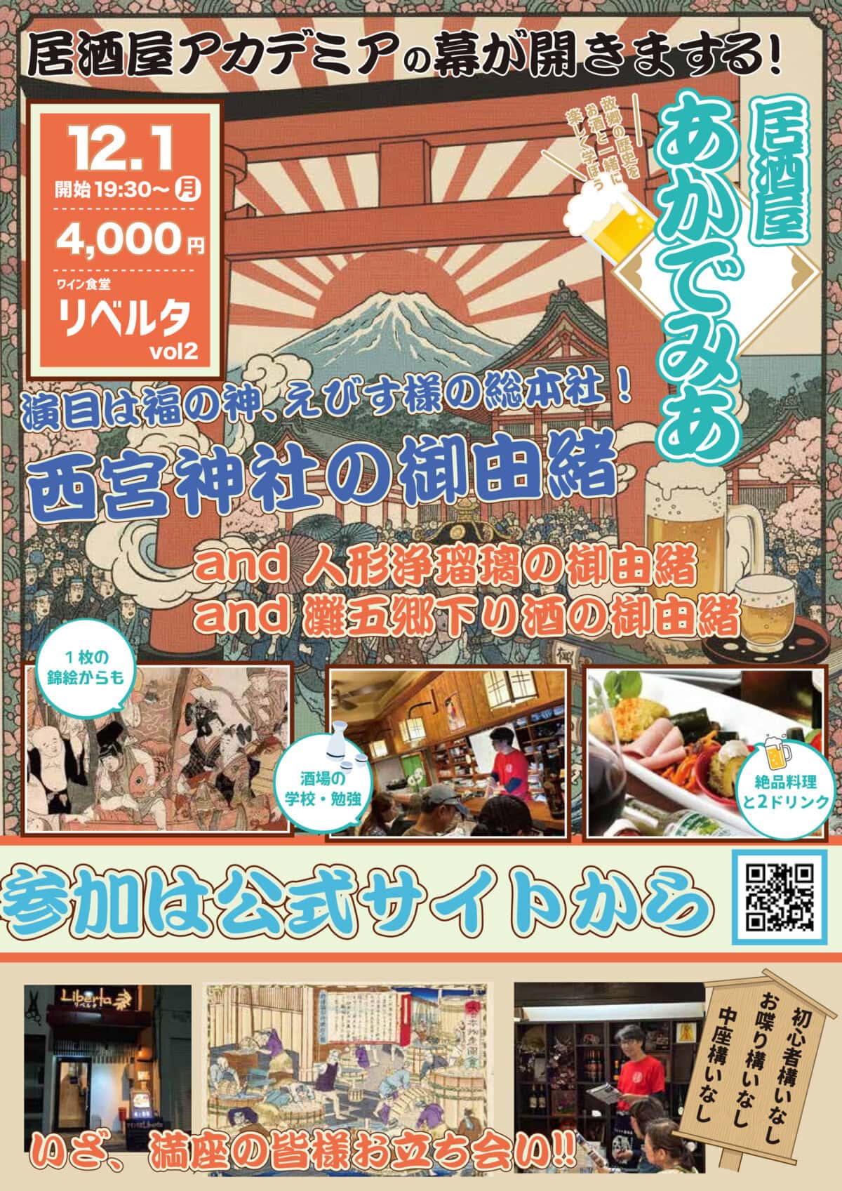 12月1日(月)、ワイン食堂リベルタで『居酒屋あかでみあ vol2』が開催されるようです。