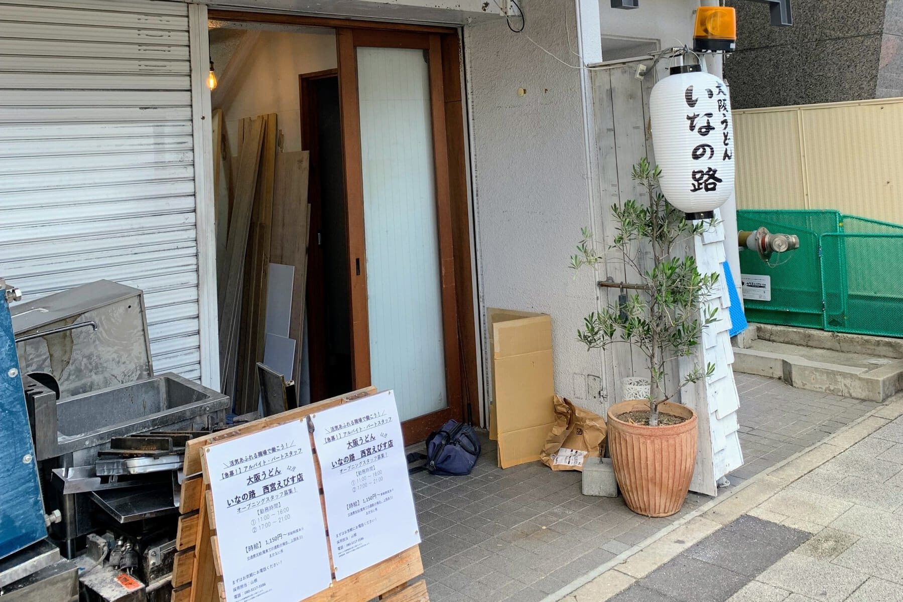 国道2号線ぞい和上町で作っている「大阪うどん いなの路」に提灯がついています。