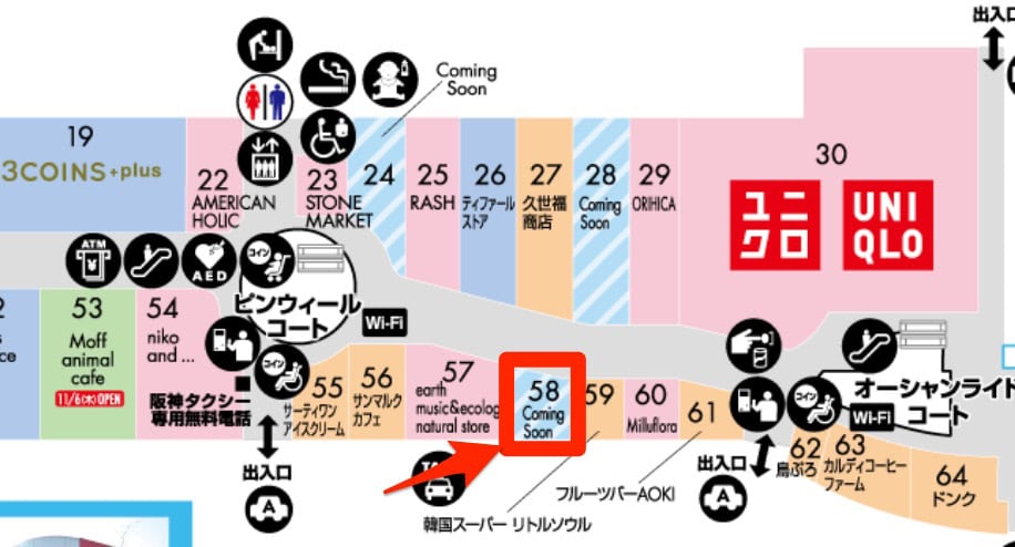1階のアースミュージック&エコロジーとリトルソウルの間。前までフラワーショップ「KARENDO」があった場所です。