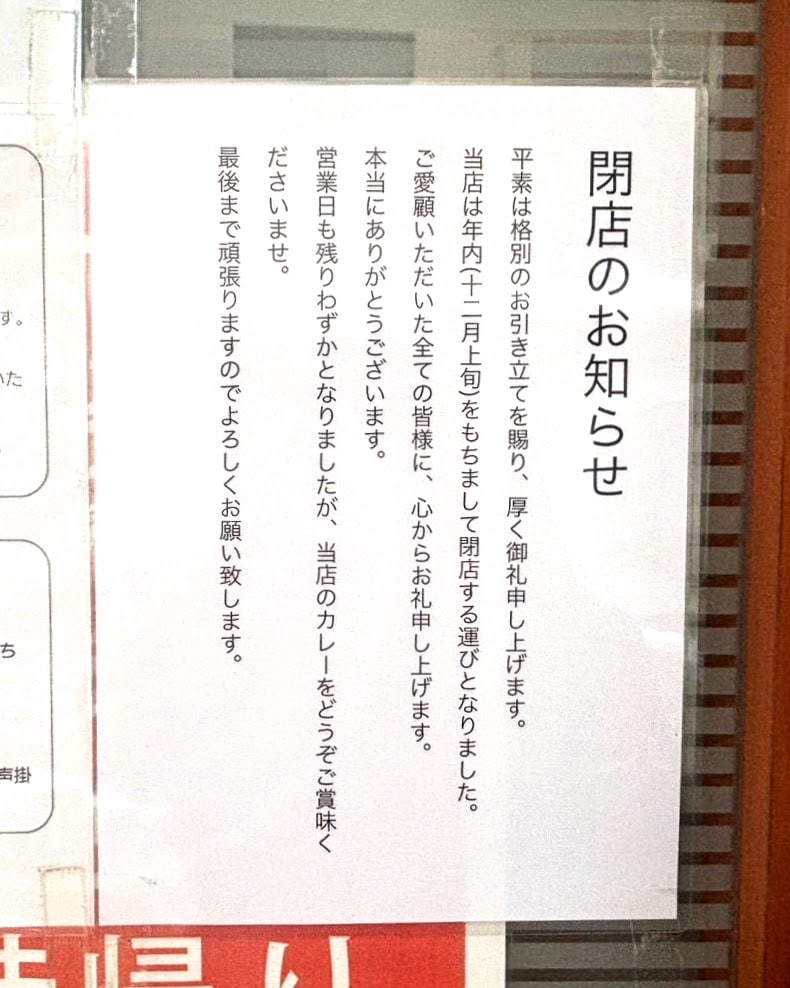 室川町のニューフタバサンモール商店街にある「カレーキッチン福耳」が閉店するようです。