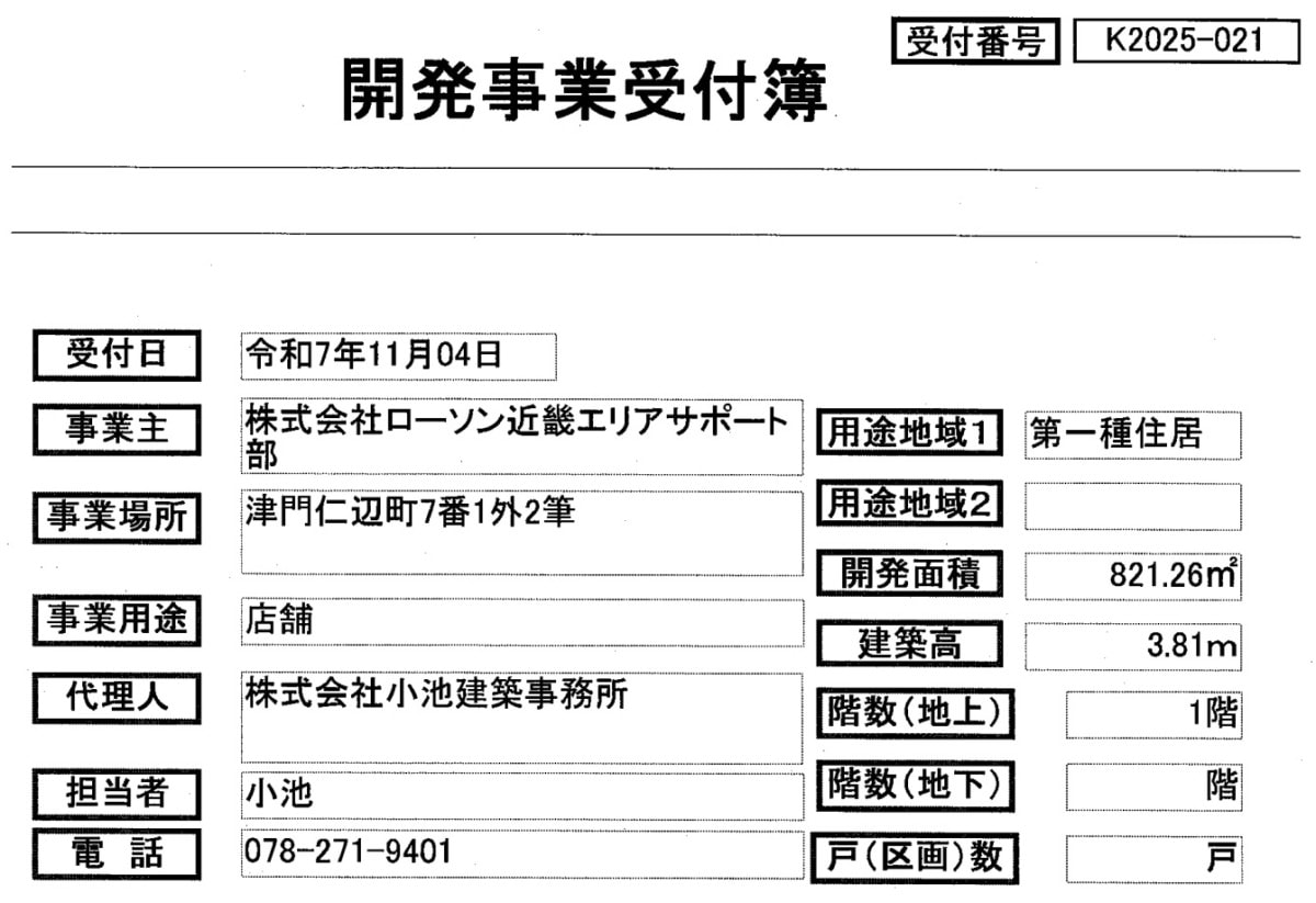今津西線ぞい津門仁辺町にコンビニ「ローソン」ができるようです。