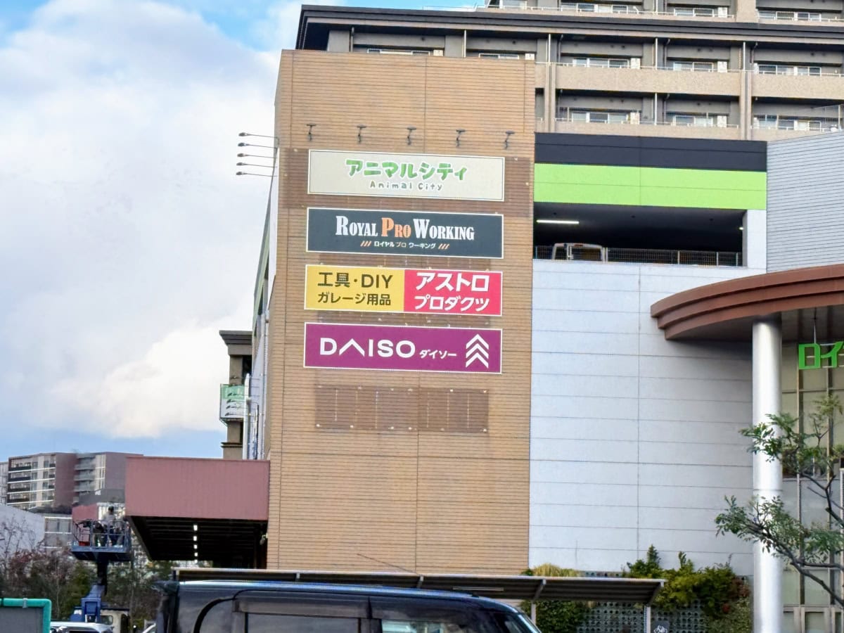 国道2号線沿い阪神国道駅近くにあるロイヤルホームセンターに、ダイソーの看板がついています。