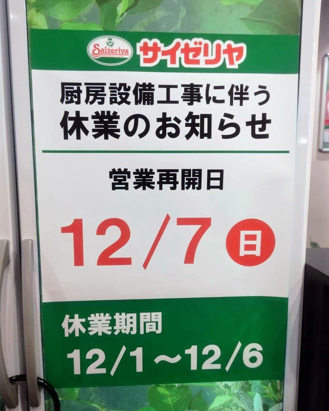 厨房設備工事のため、12月1日(月)〜12月6日(土)の間は休業するようです。営業再開日は12月7日(日)とのこと。