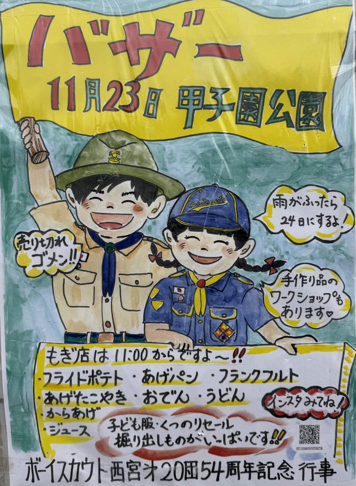 ボーイスカウト主催のバザーのようです〜。いろんな食べものにバザー、ワークショップもあって、けっこうにぎやかになりそうですよね〜。思わぬ掘り出しものに出会えるかもですし、ふらっと立ち寄るだけでもじゅうぶん楽しめそうです〜😄