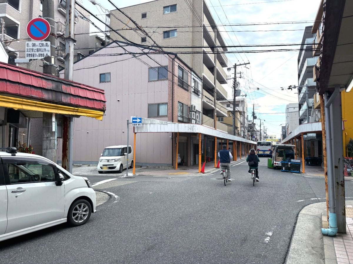 こっちへ行くと、居酒屋∞ここる∞、作り手冥利、おいしいお酒とお菜のきっちん 翔家などがあり、国道2号線に出ます。