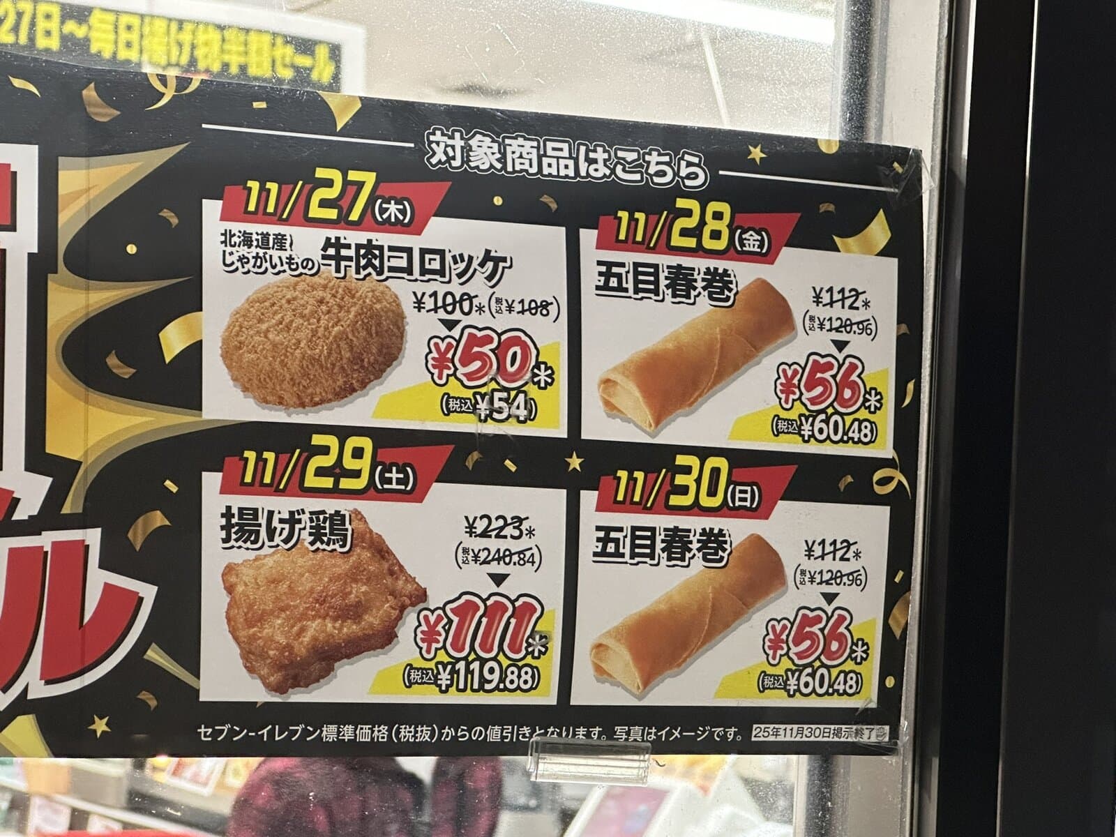全国ですが、西宮にも関係あるので記事にします。「セブンイレブン」の揚げ物が11月30日まで半額になるそうです。
