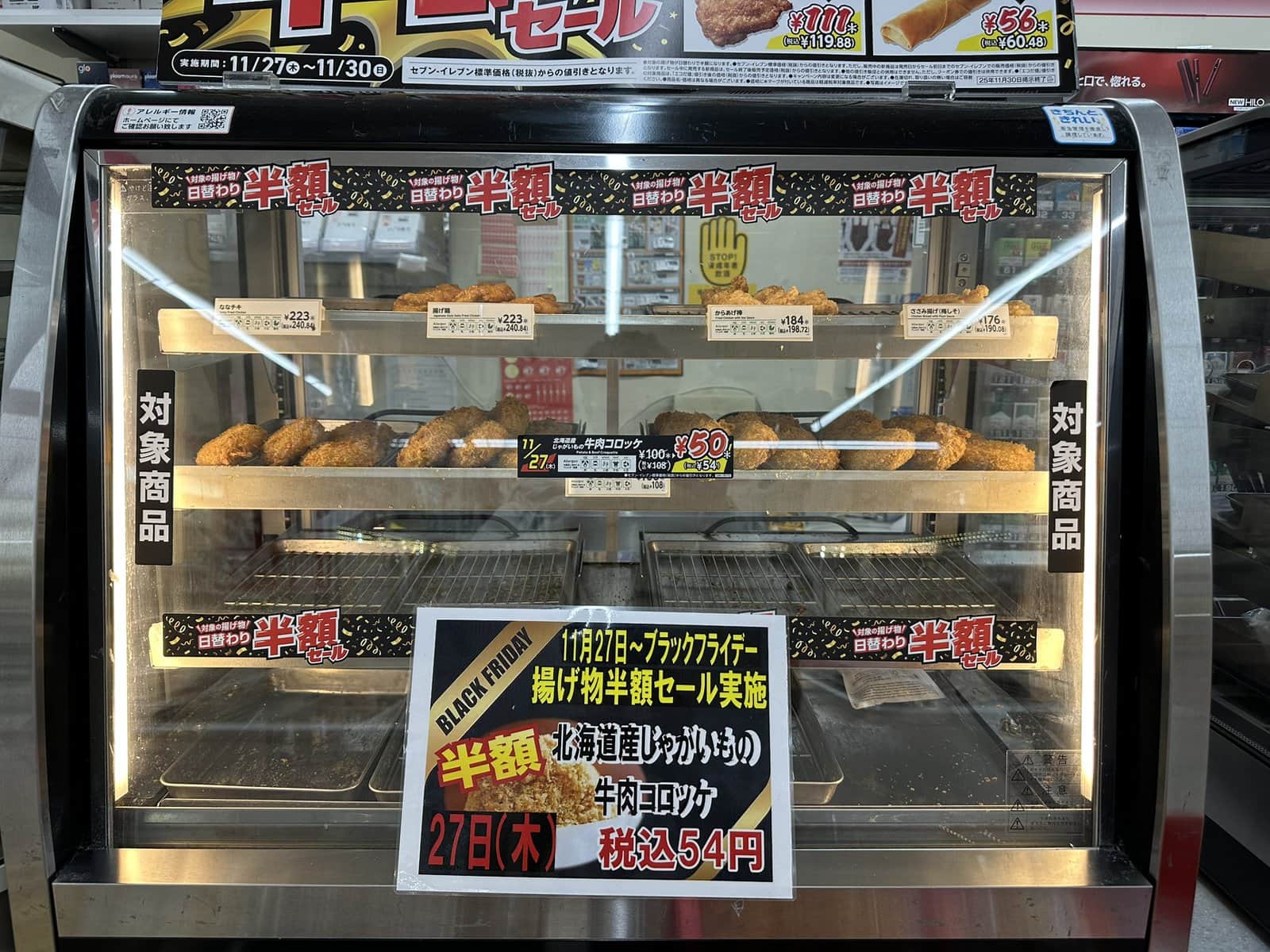 「ブラックフライデー」のシーズンはいろいろ安くなりますが、半額で60円、120円の商品はなかなかないですよね~。西宮をはじめ、全国のセブンイレブンで半額になるので、小腹が空いたら気軽に食べてみてください!