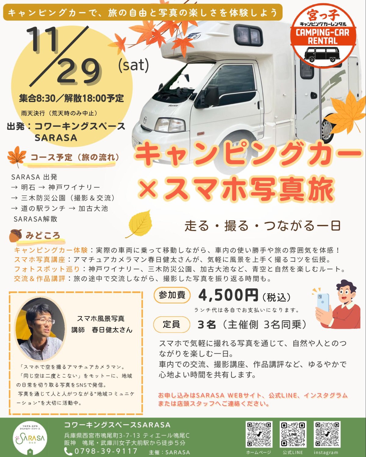 今回は、宮っ子キャンピングカーレンタルさんの“キャンピングカー”で兵庫県を巡りながら、写真家・春日健太さんにスマホで撮る風景写真講座をお願いした豪華コラボ企画です📸✨
