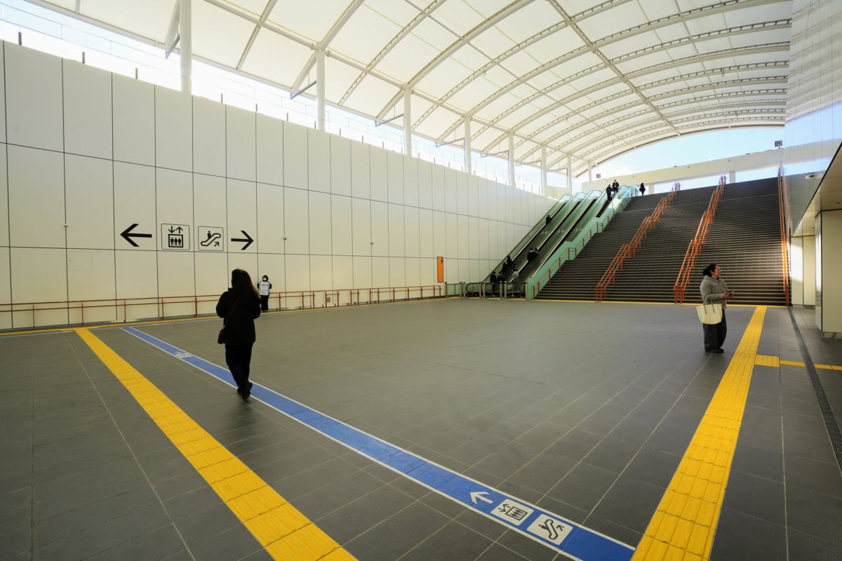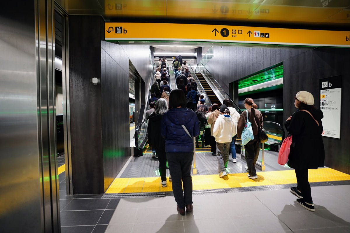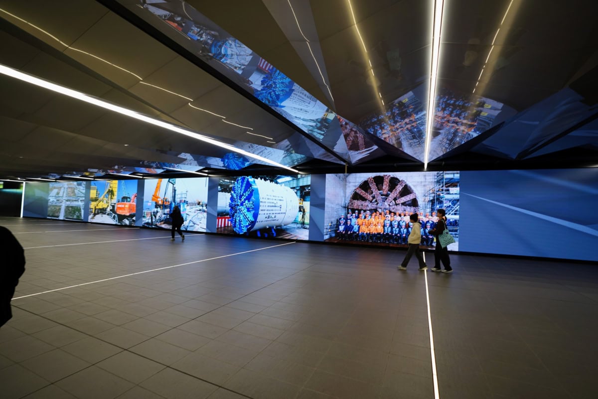 ミャクミャクがいた駅構内のデカ長いモニターは「地下鉄ができるまで」みたいな動画が流れていました。