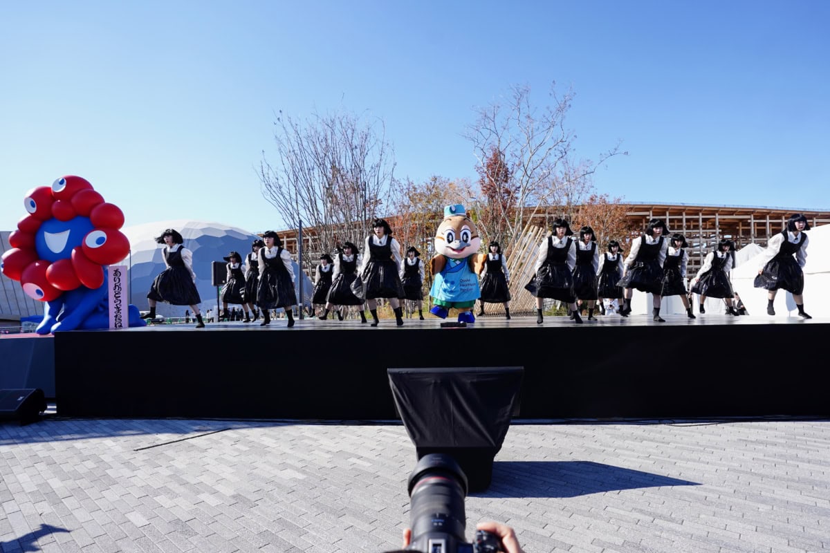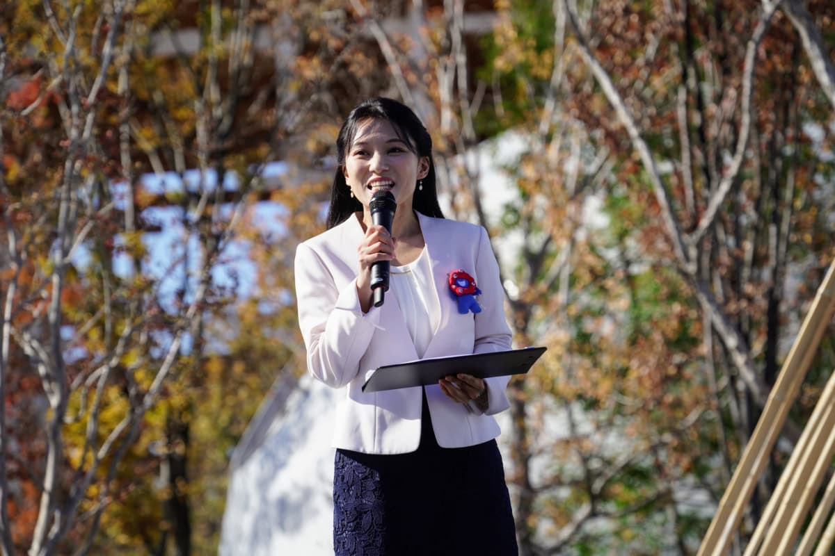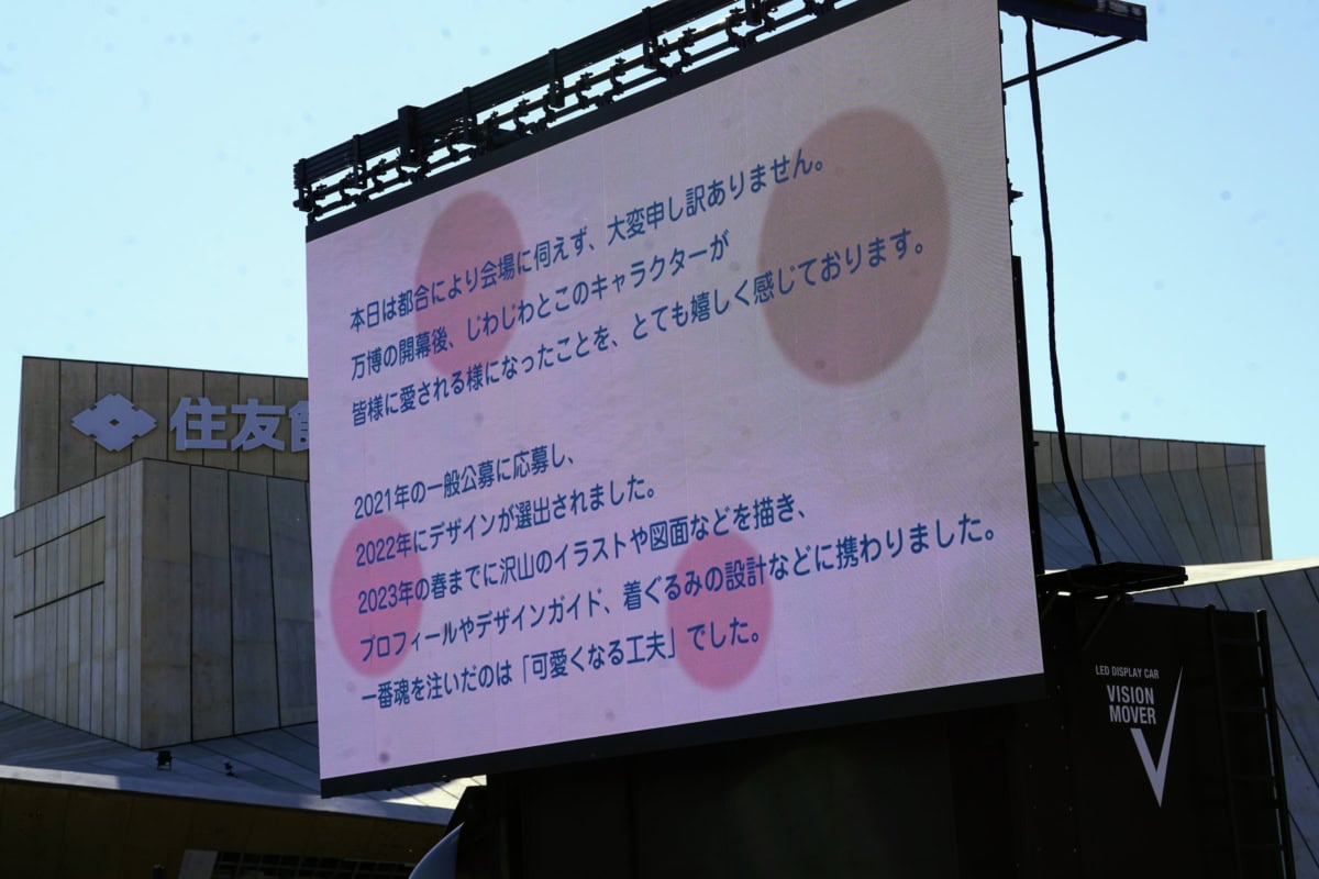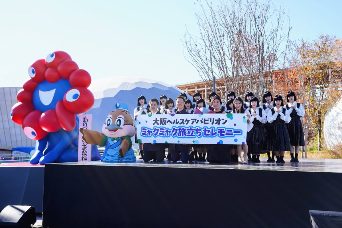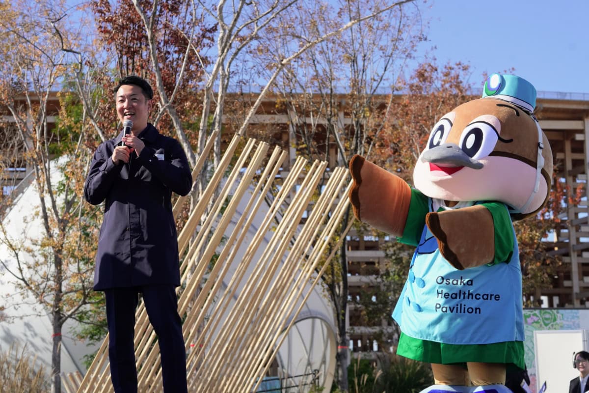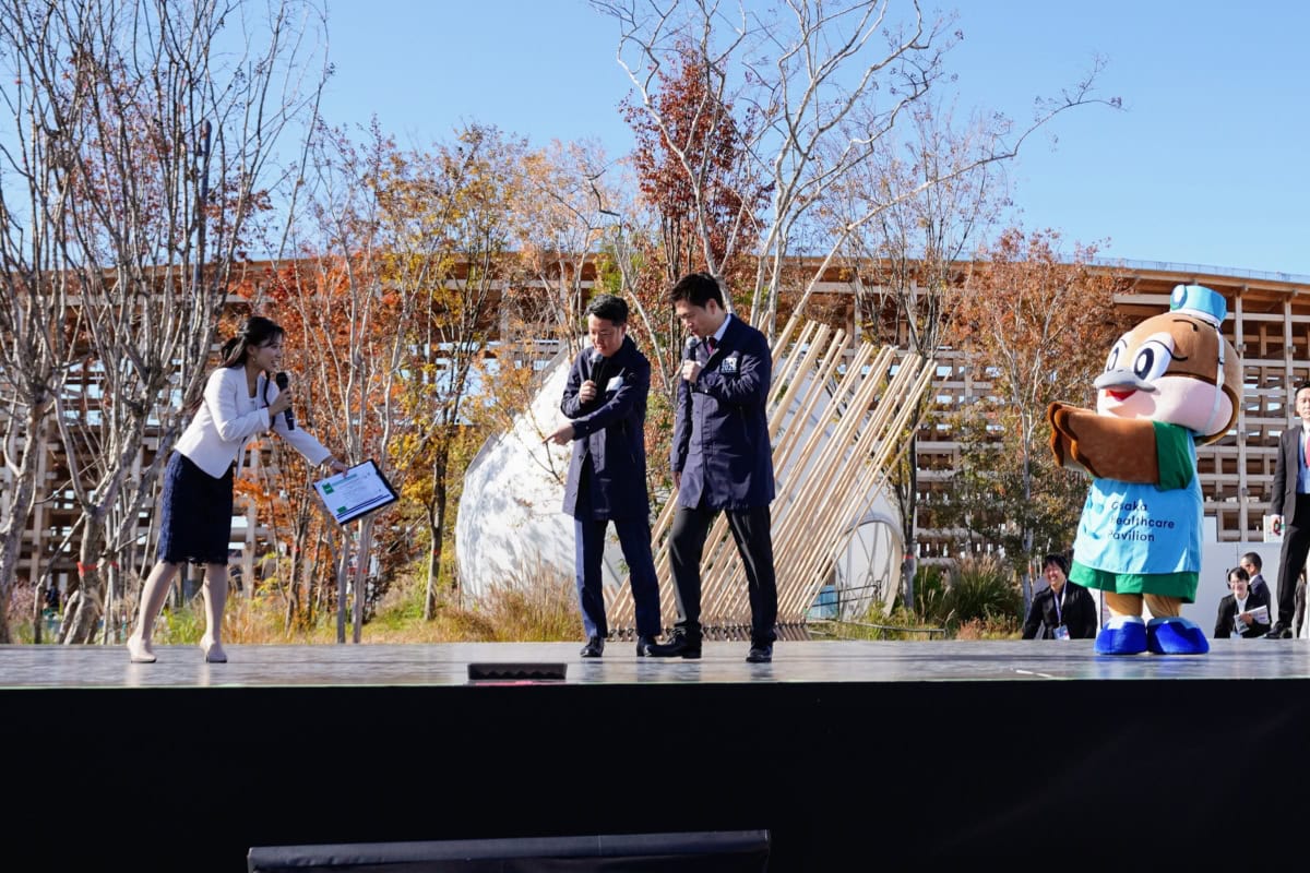 司会の石塚 理奈さんは万博の司会というならって方。胸のミャクミャクがかわいい
