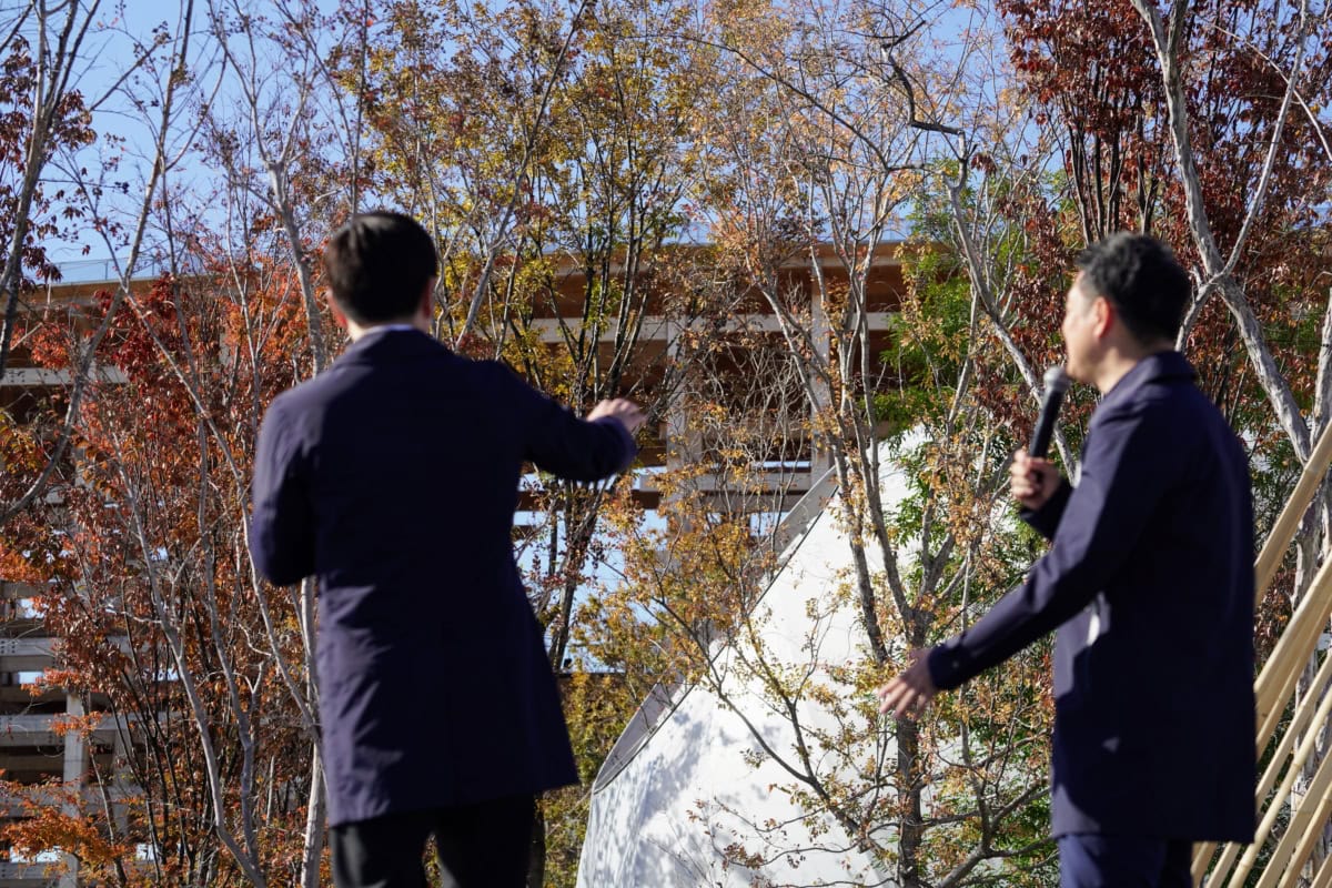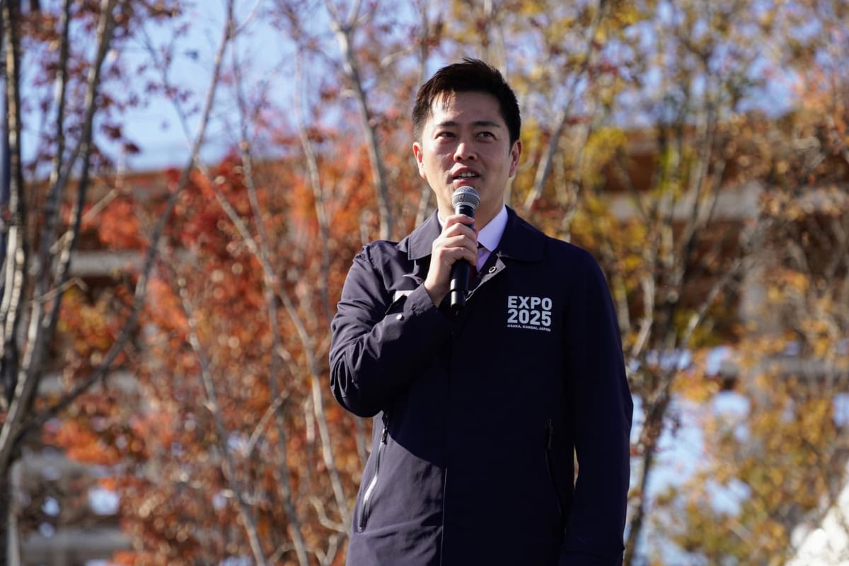 立ち位置を間違える、吉村知事に即効のツッコミの横山市長。