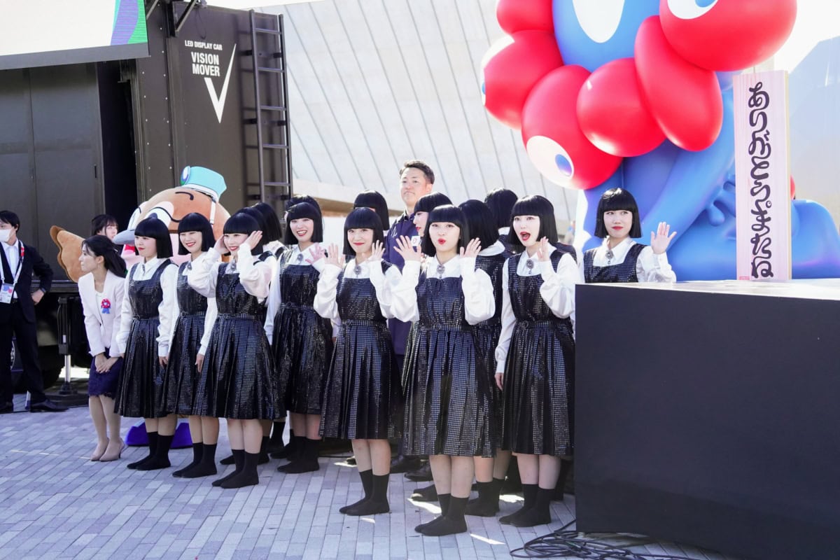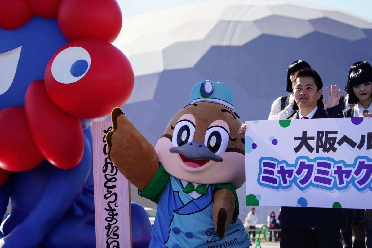 司会の石塚 理奈さんは万博の司会というならって方。胸のミャクミャクがかわいい