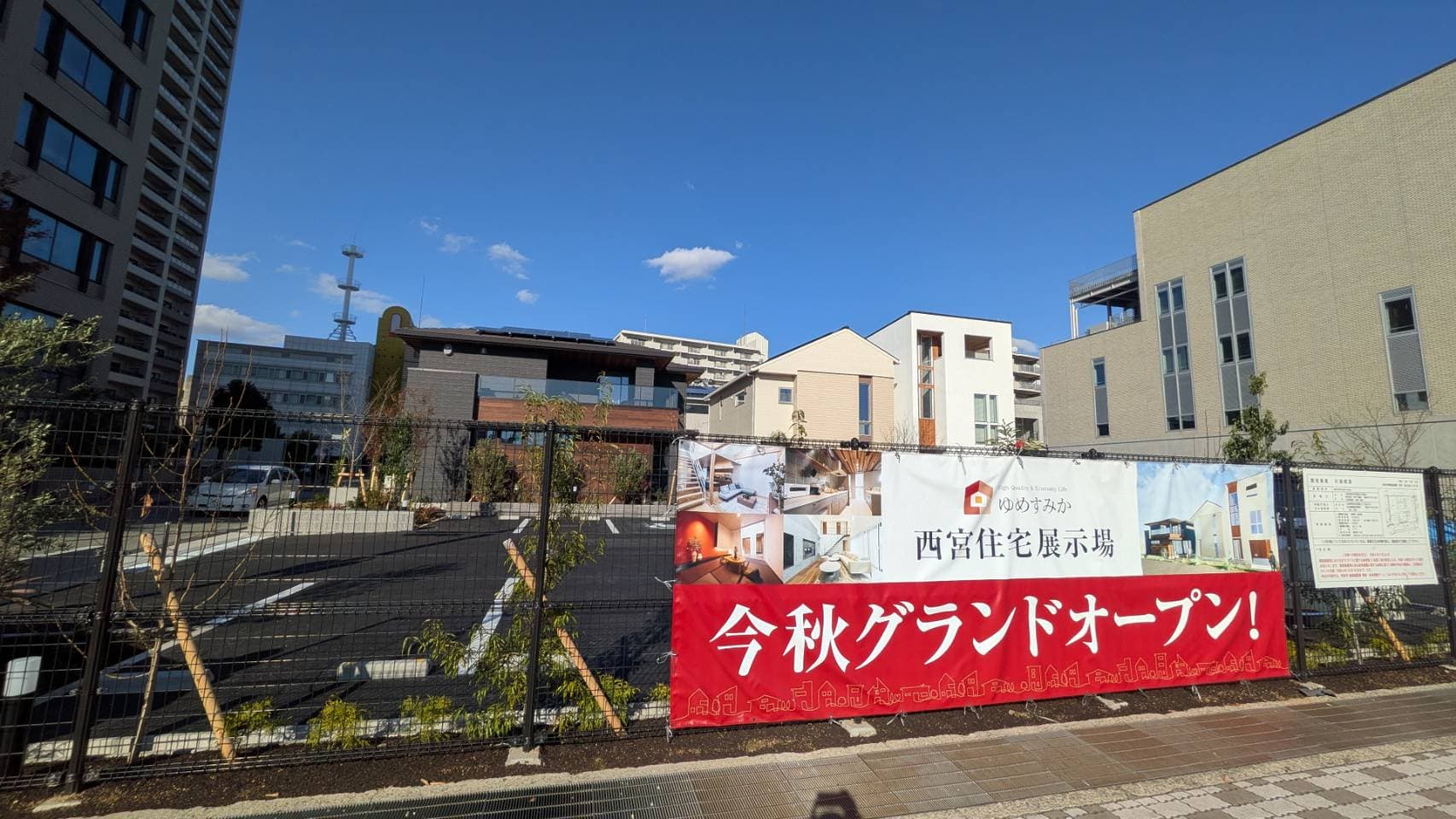国道2号線沿い西宮消防署の横でつくっている住宅展示場は、12月15日にオープンするようです。