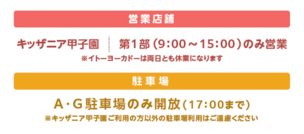 キッザニア甲子園・・・両日の15:00以降は休業
