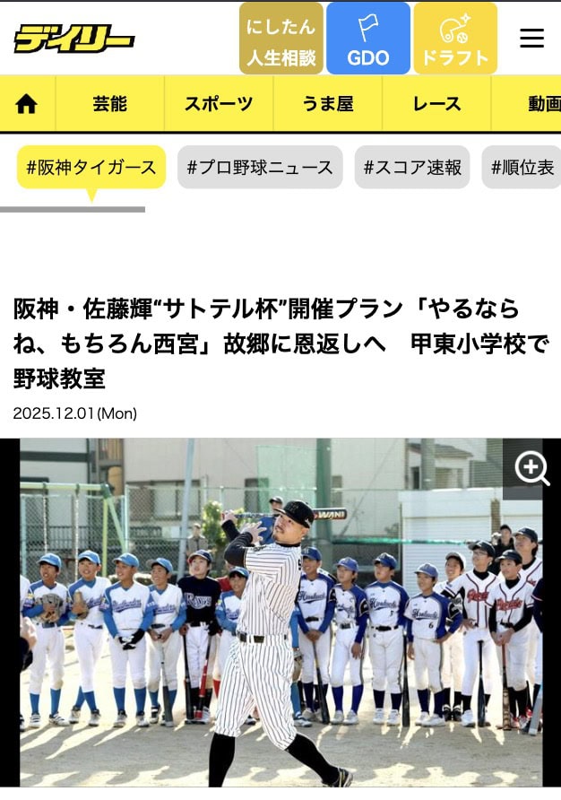 阪神・佐藤輝“サトテル杯”開催プラン「やるならね、もちろん西宮」故郷に恩返しへ 甲東小学校で野球教室/阪神タイガース/デイリースポーツ onlineより引用