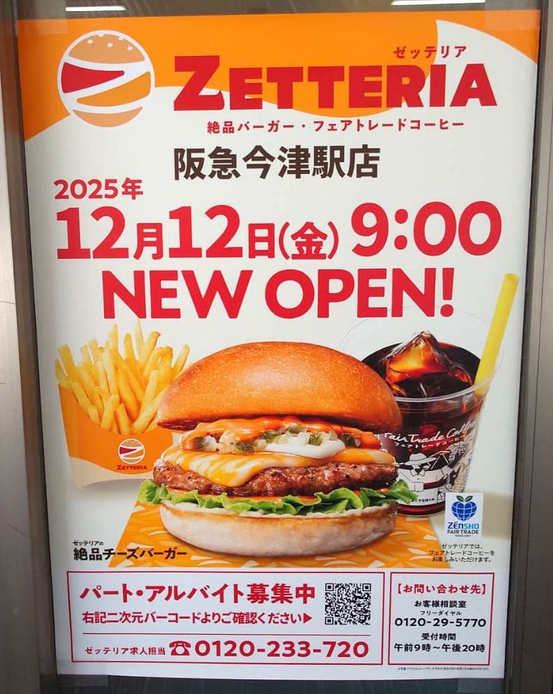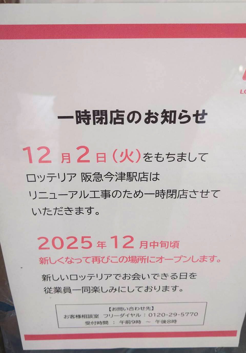 阪急今津駅の1階にあるロッテリアが「ゼッテリア」に生まれ変わるようです。