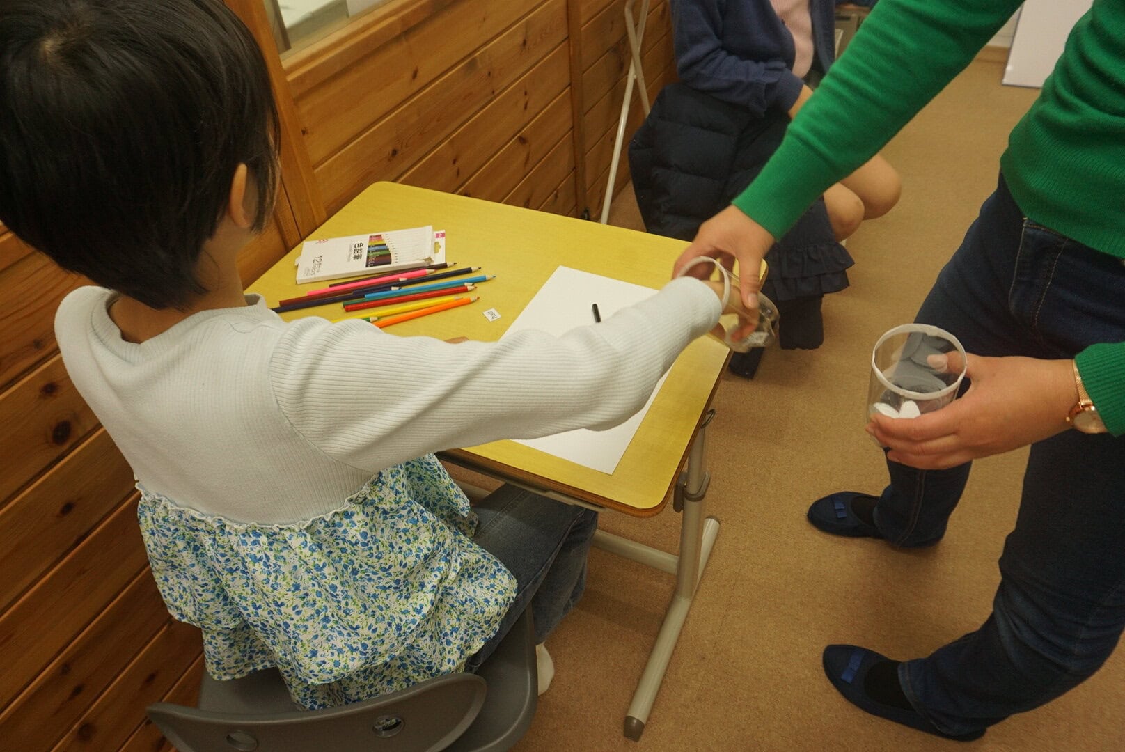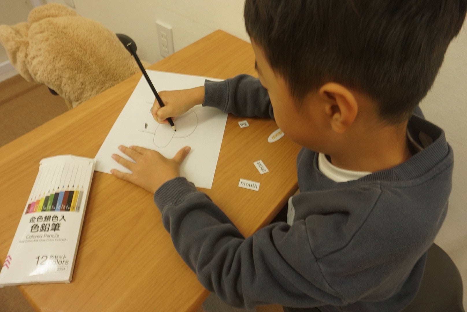 その後は、顔の部位と色が英単語で書いてあるくじを引いて、オリジナルの顔を絵に描いていました〜✏️