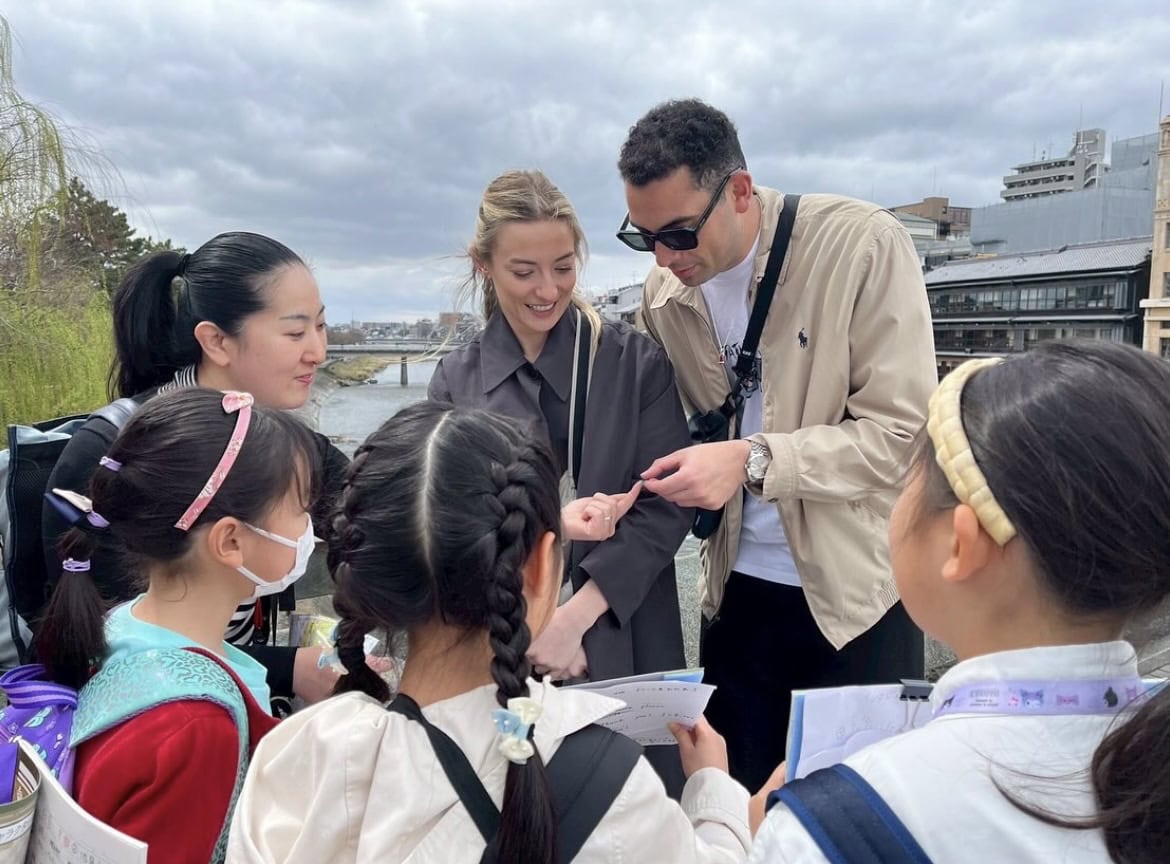 例えば、みんなで京都の街に行き、外国人観光客に英語で街頭インタビュー。緊張しながらも「どの国から来られましたか?」「日本のいいところはどこですか?」など、堂々とインタビューをしたんですって〜🗣️