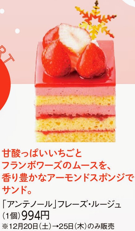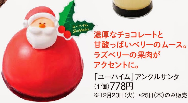サンタさんなケーキが食べたい方はこちら。味付けがラズベリー果肉なので大人な感じ。