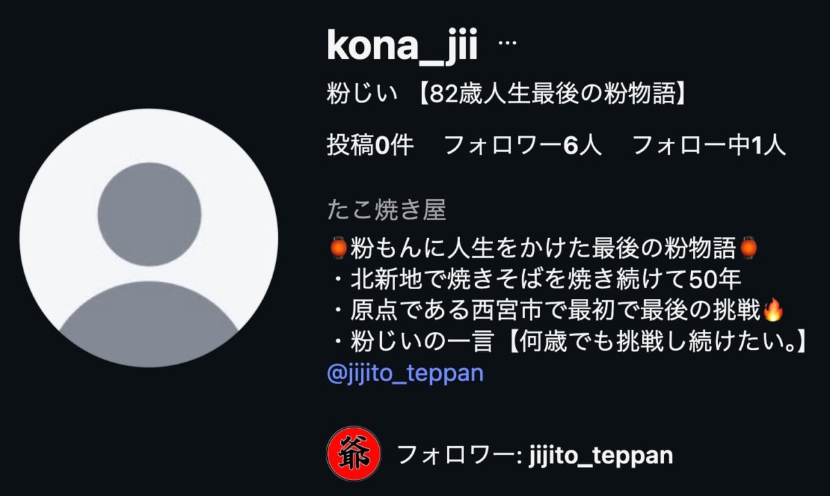 インスタのプロフィールに「粉じい【82歳人生最後の粉物語】」という店主さんのアカウントも紹介されていました。