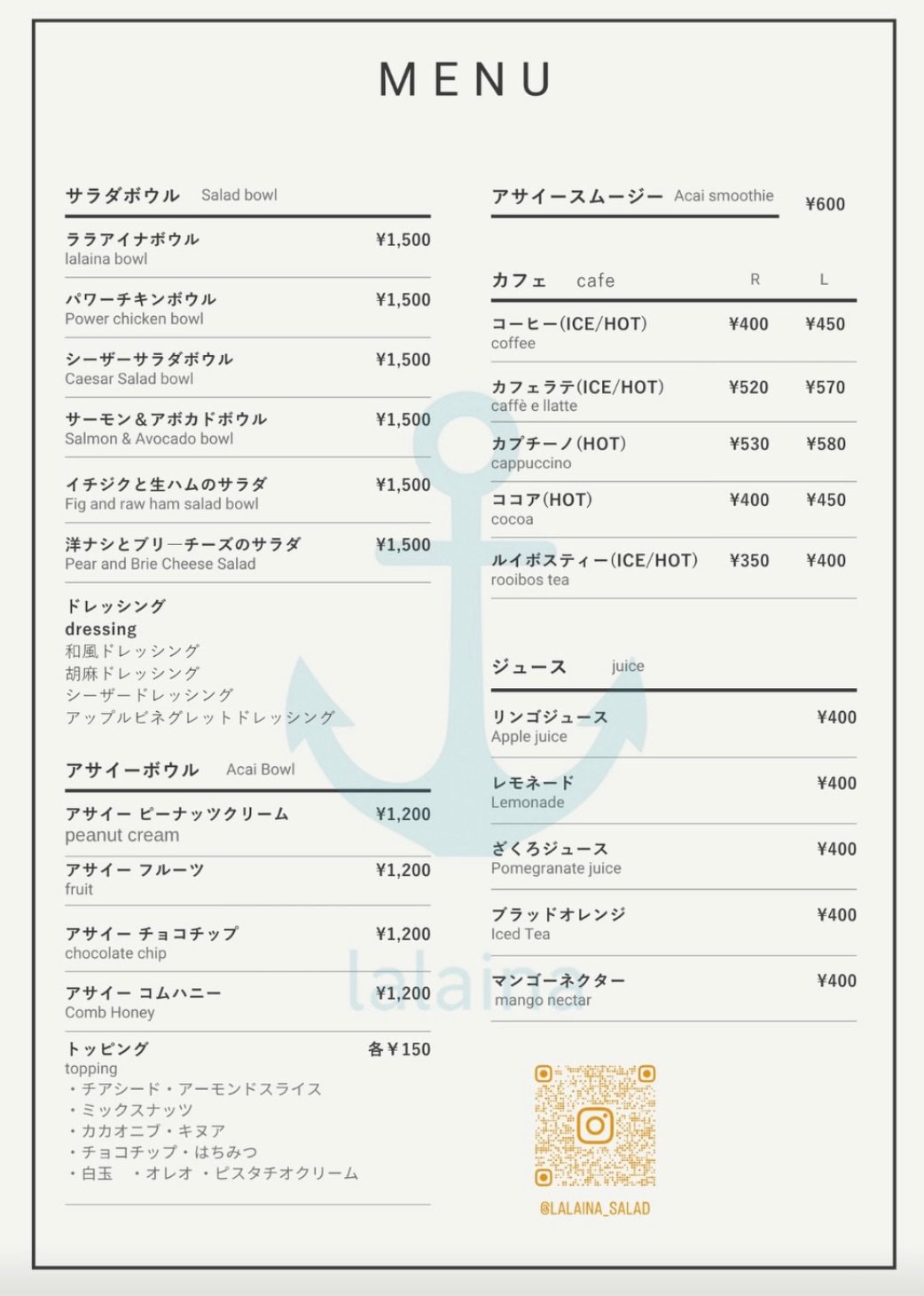 「lalaina」メニュー
