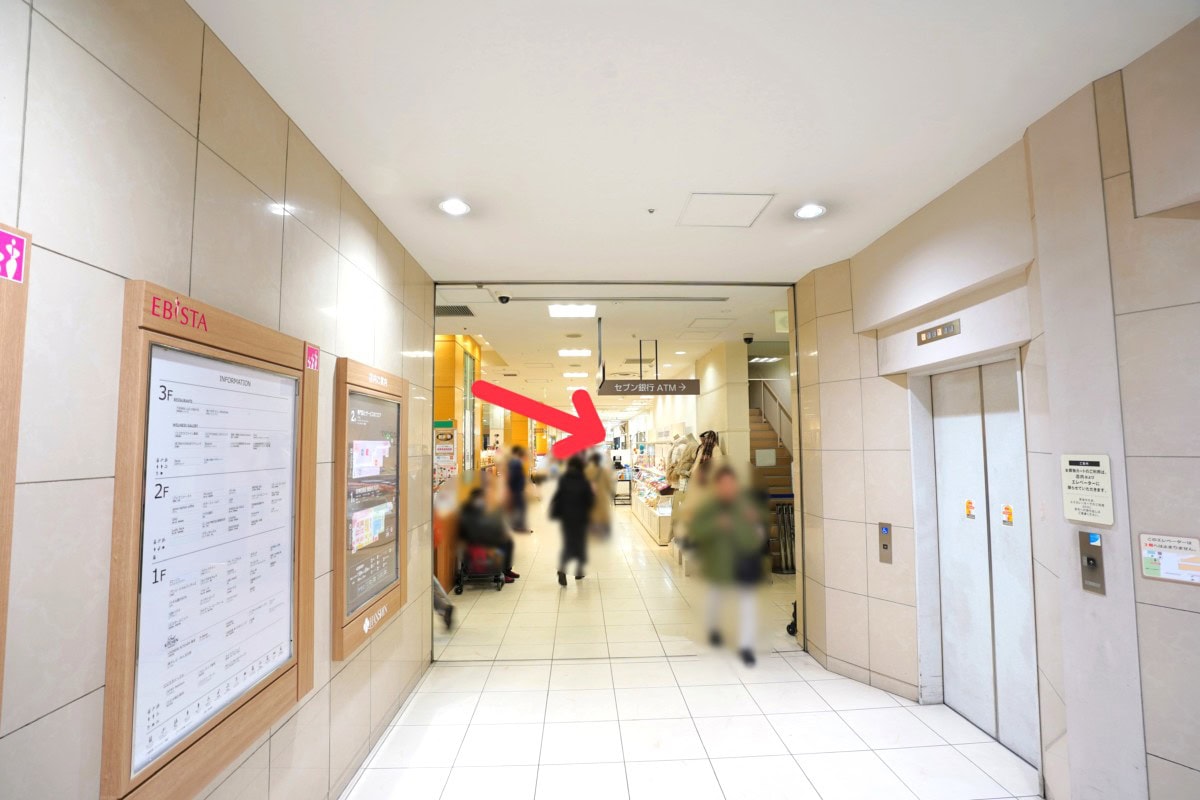 1階のエレベーター乗り場からお店に入ってすぐのところ。