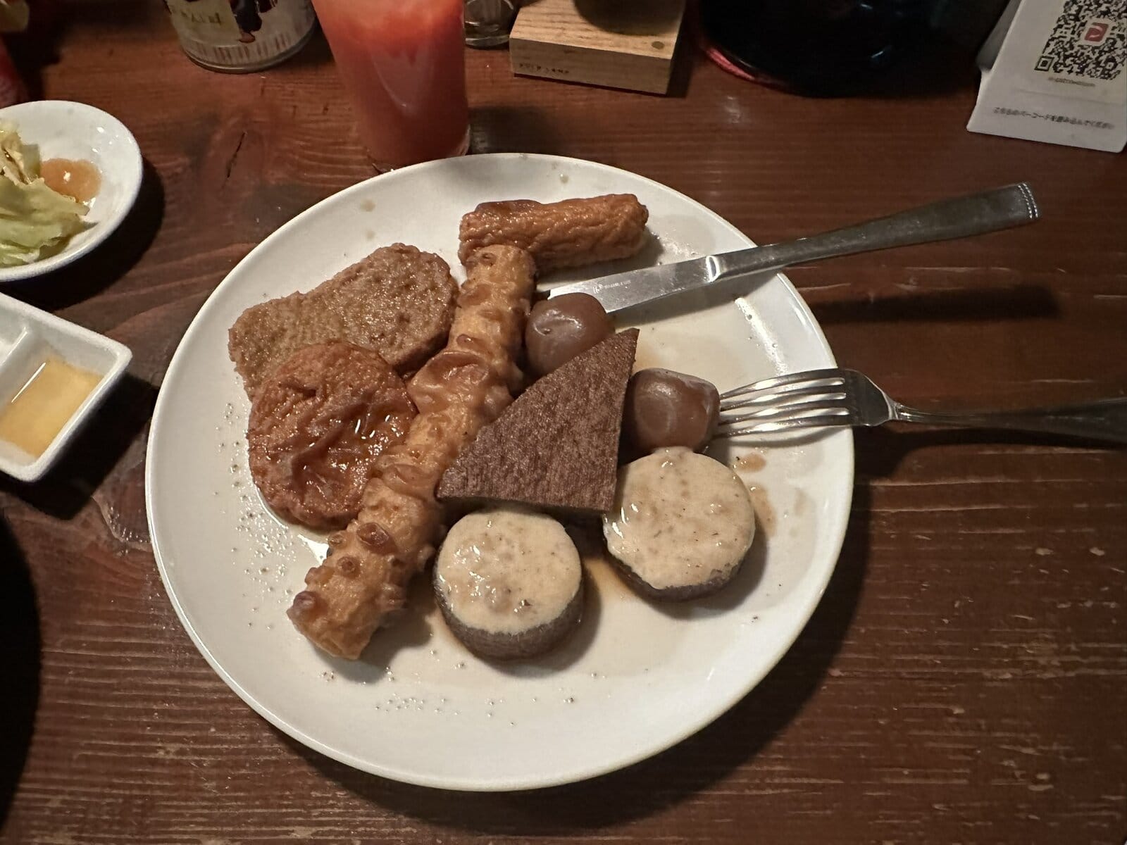 こちらは名物のおでん盛り合わせ。大根にポルチーニソースをかけると最高の味付け。