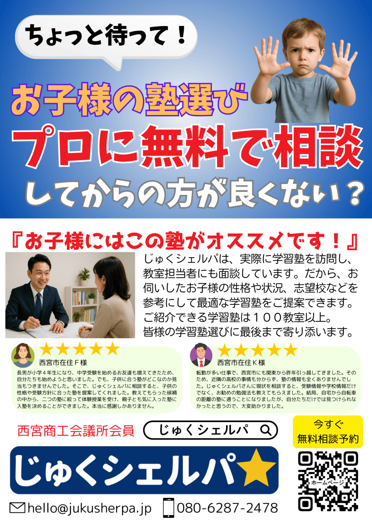 じゅくシェルパは、西宮の受験家庭向け無料相談サービス