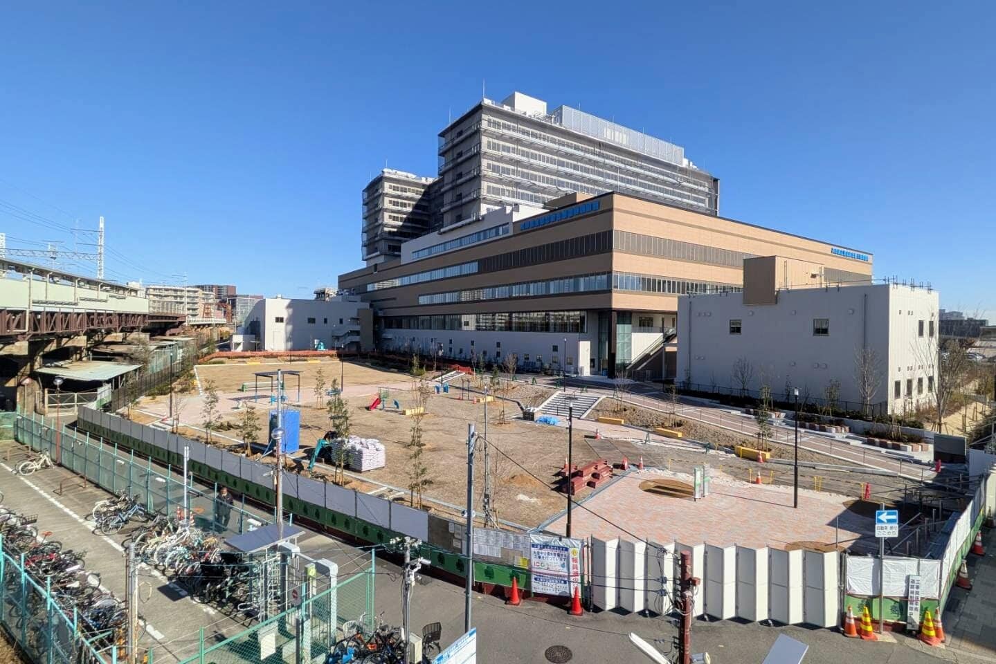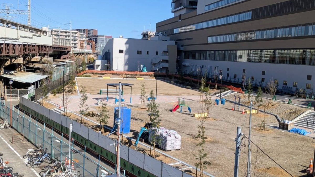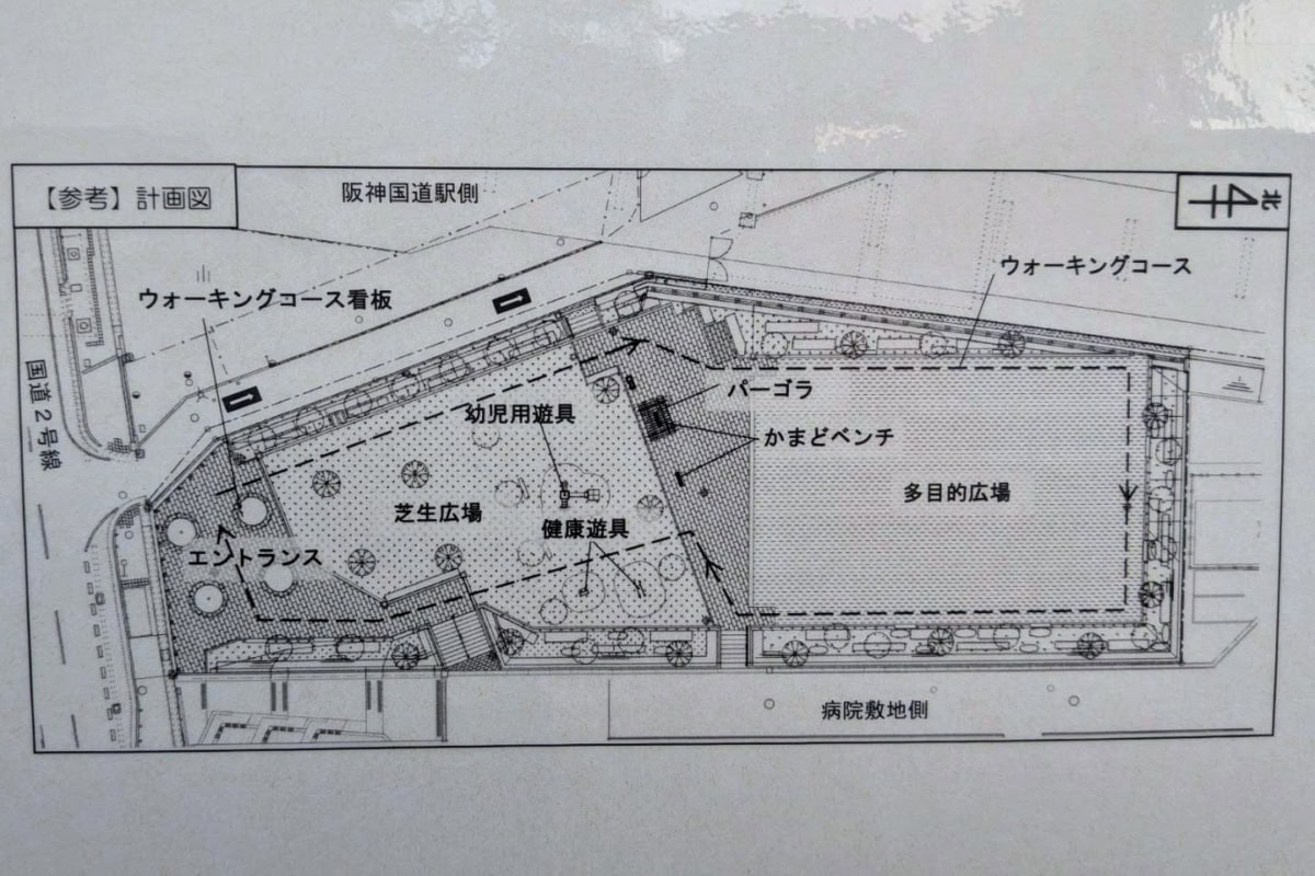 阪神国道駅の横で建設中の「兵庫県立西宮総合医療センター」のお隣にできる『公園』ができてきています
