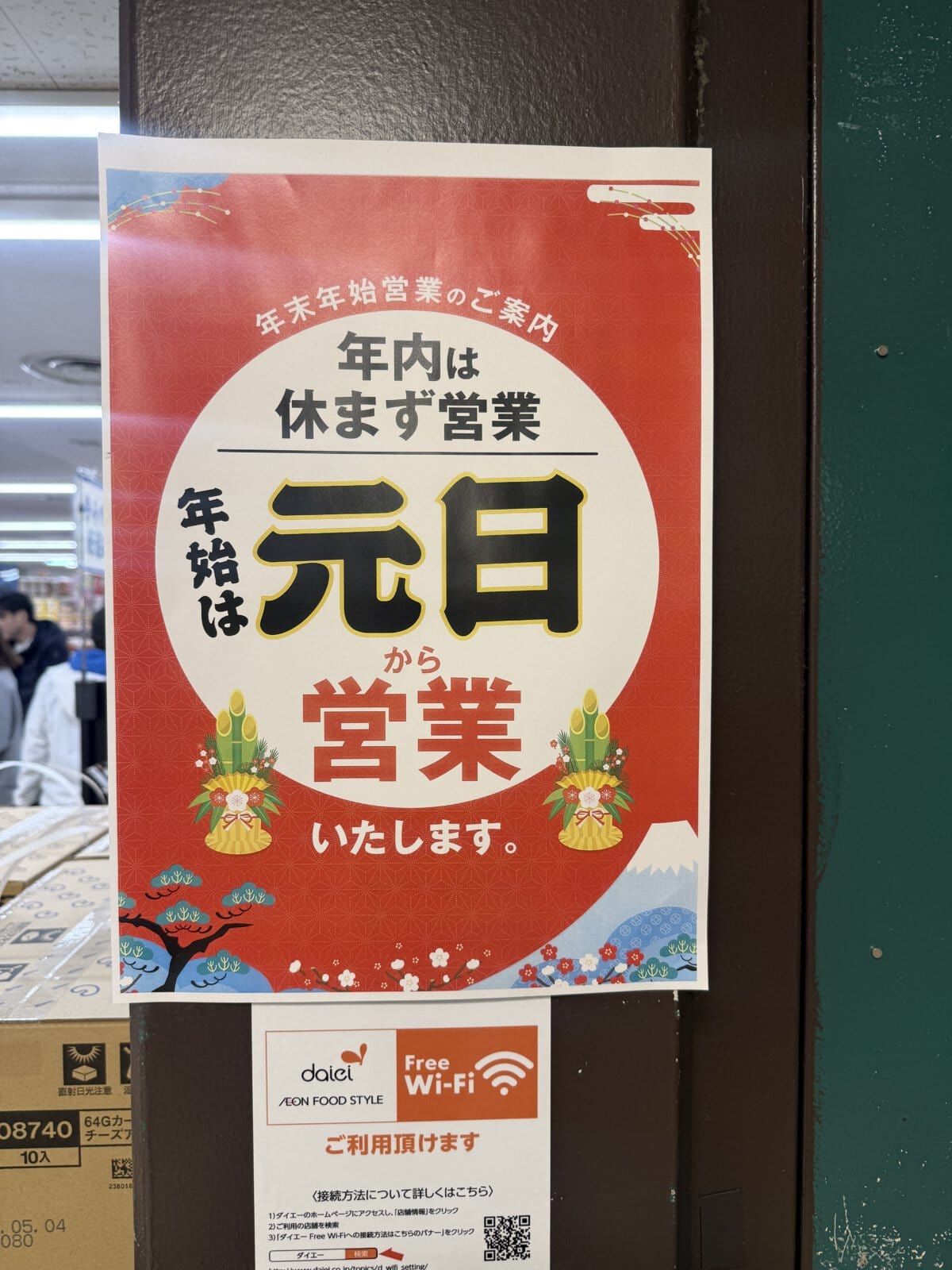 31日のみ早く営業が終わる。お正月三が日は休みと覚えておきましょう。