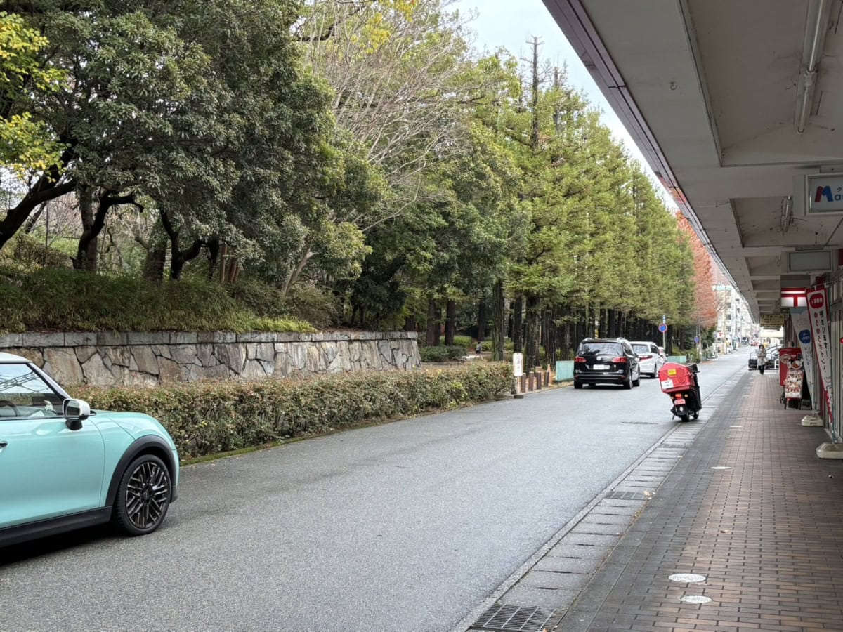 西へ行くと万葉苑筋です。寿交番、フリアンド、コープなどがあり、夙川駅方面。