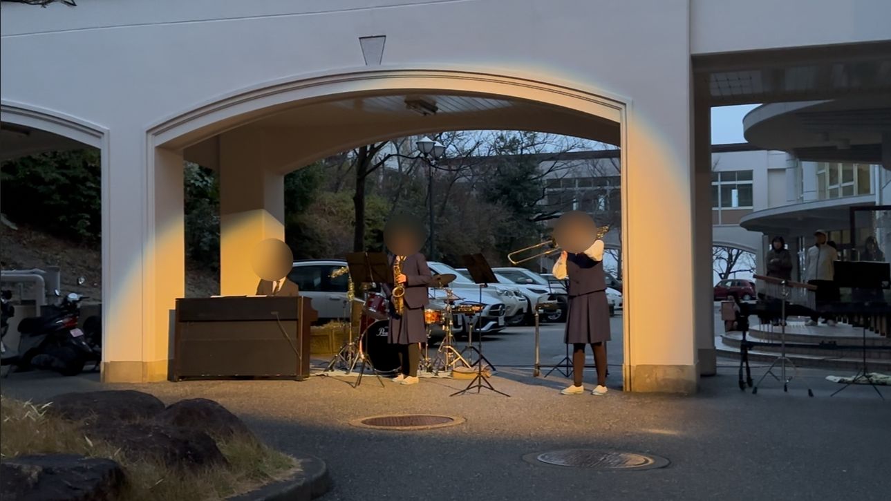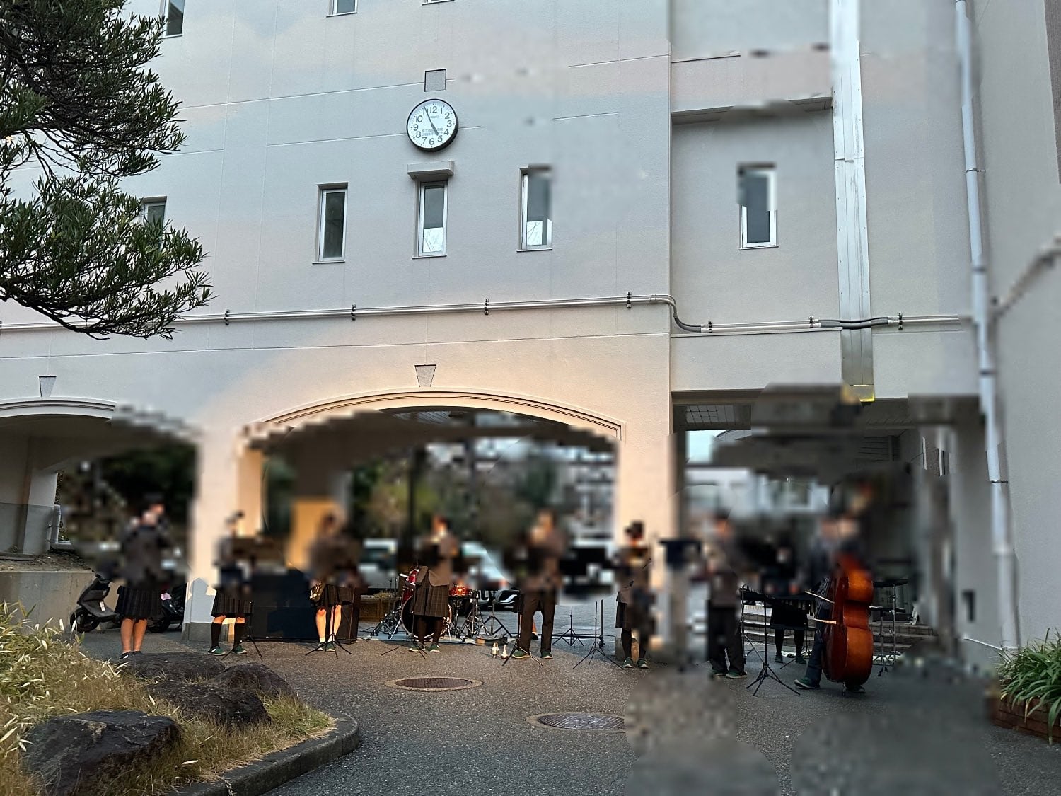 プロジェクションマッピング前は吹奏楽部の演奏です~。