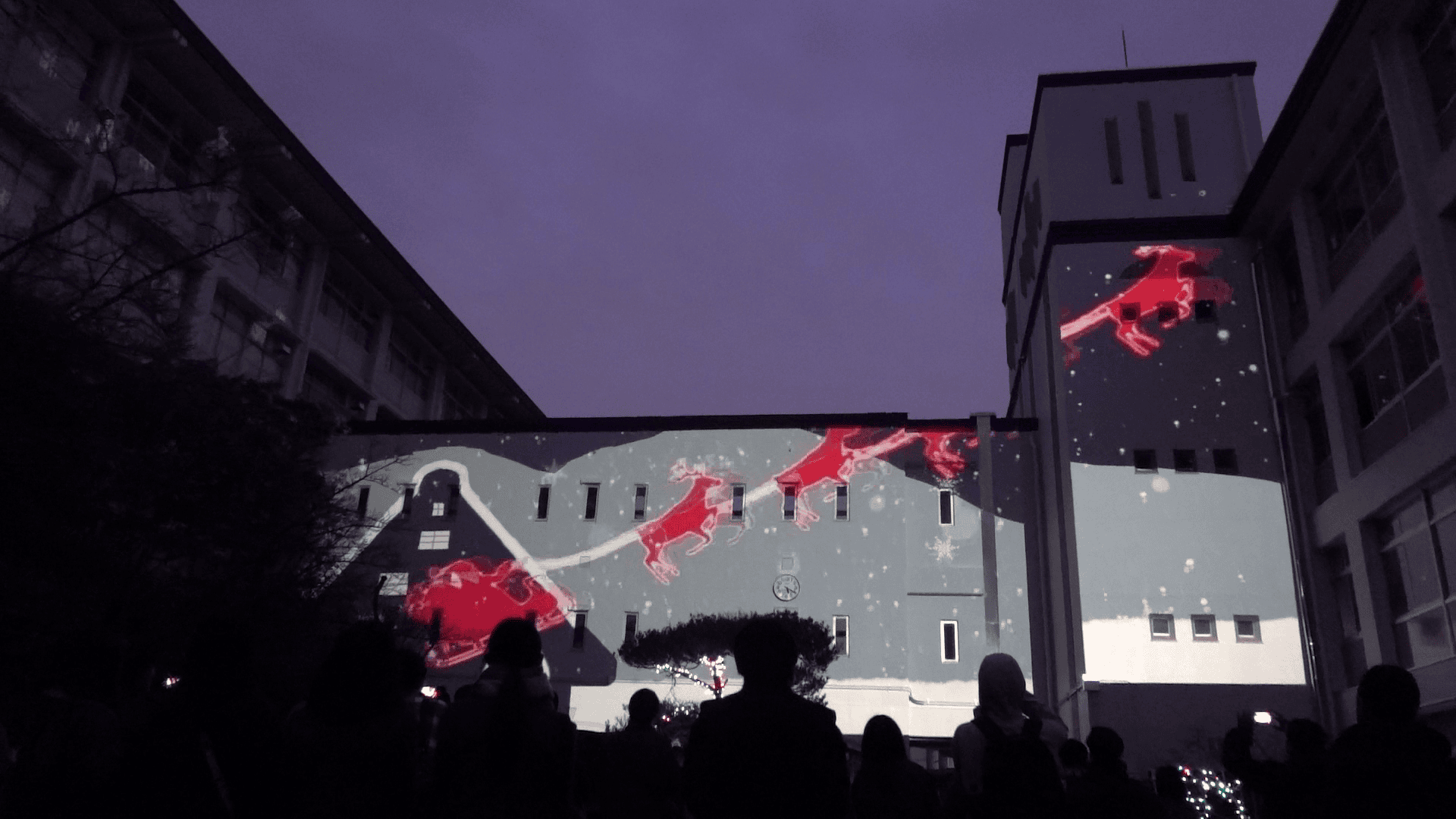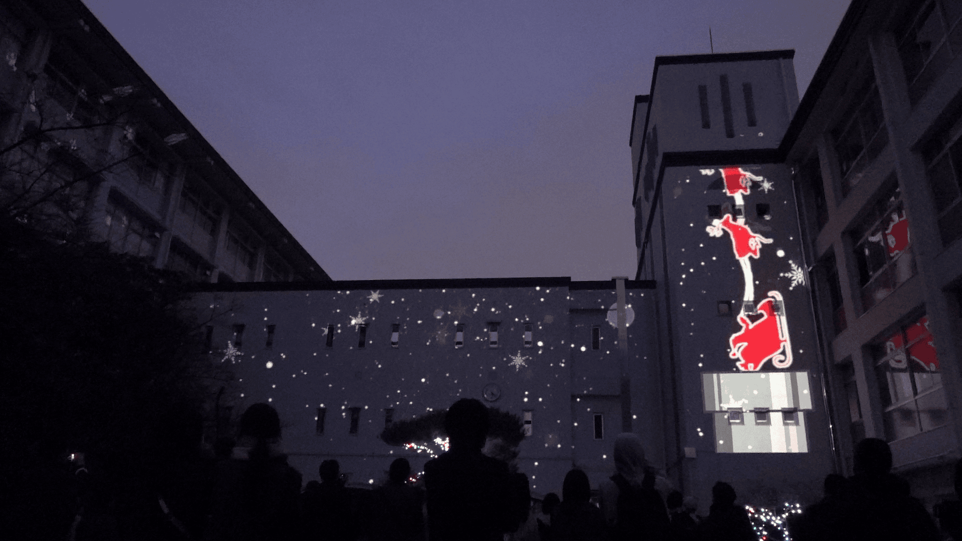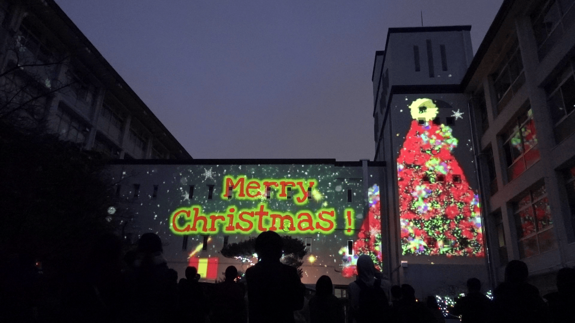 12月24日クリスマスイブの夜に開かれた、西宮苦楽園高校の「プロジェクションマッピング」に潜入取材してきました~。