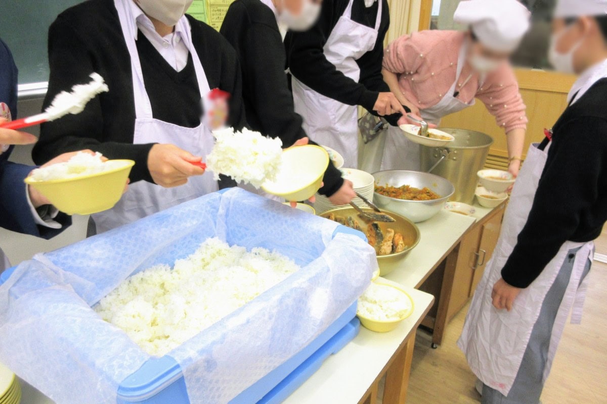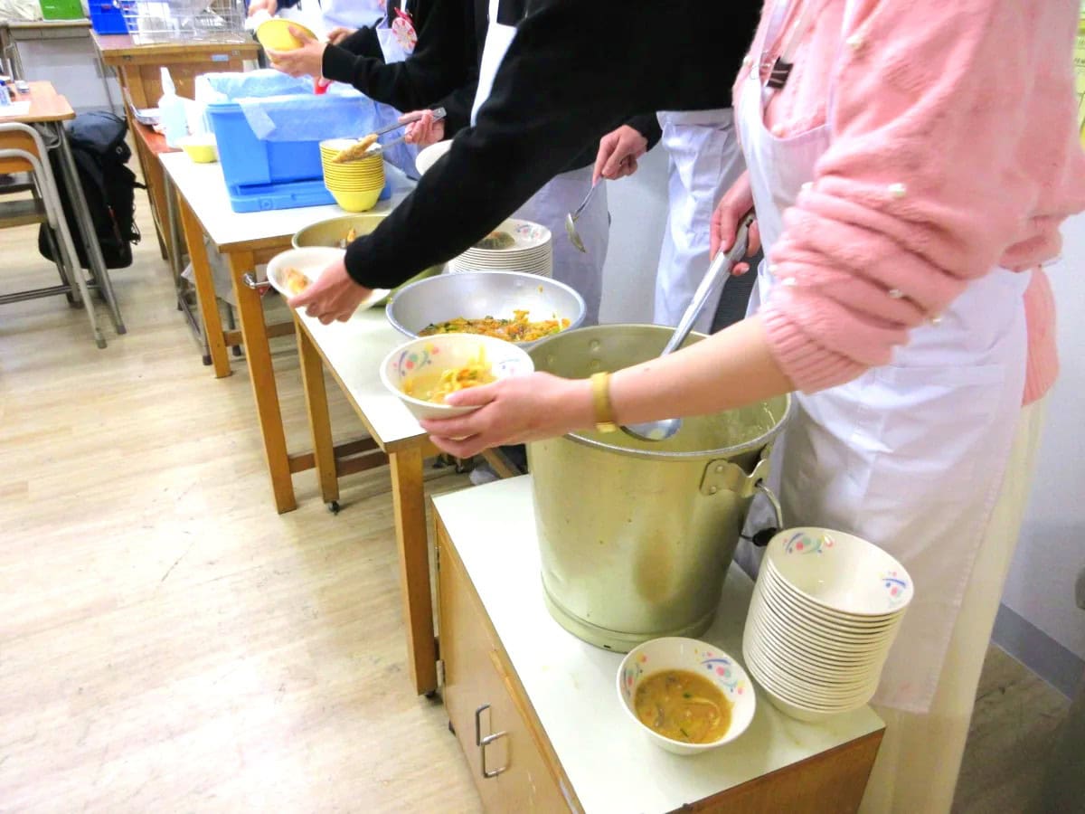このタイミングで給食を食べた宮っ子たち。10年後、20年後もうっすら記憶に残るのかな。