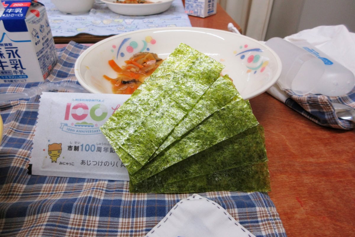 お手拭き?じゃなくて〜「あじつけのり(兵庫県産) 」でした〜。さすがに西宮産じゃなかったけど、