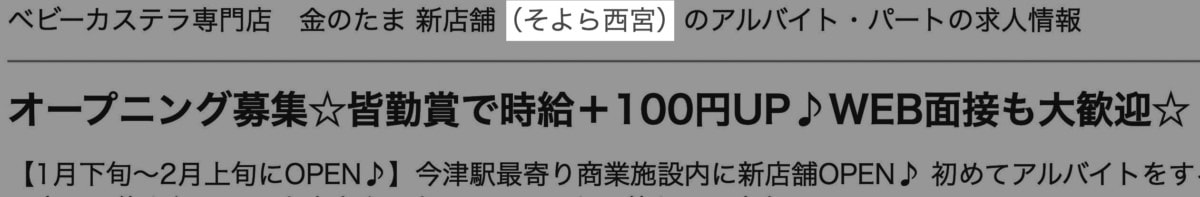 以下の画像はベビーカステラ専門店 金のたま 新店舗(そよら西宮)のアルバイト・パートの求人情報|バイトルで仕事探し(No.154353818)より引用しました。