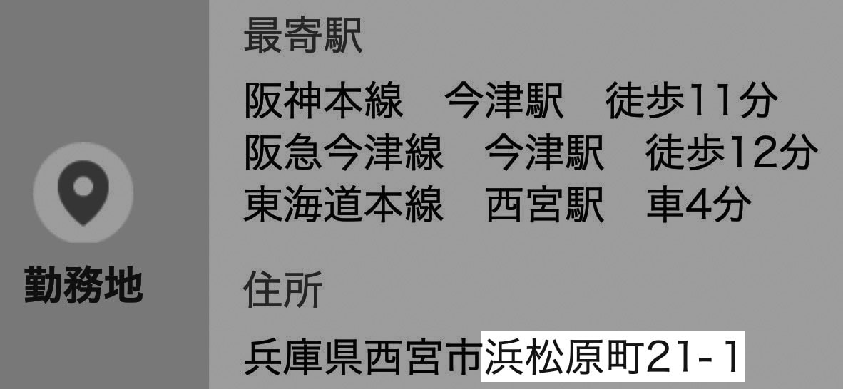 住所は兵庫県西宮市浜松原町21−1です。