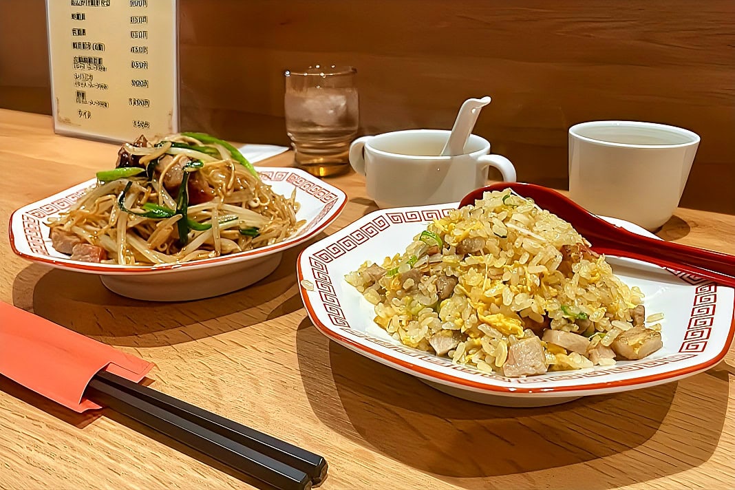 パラッと炒飯に、ゴロッとチャーシューの香港焼きそば。これは満足度高そう😆