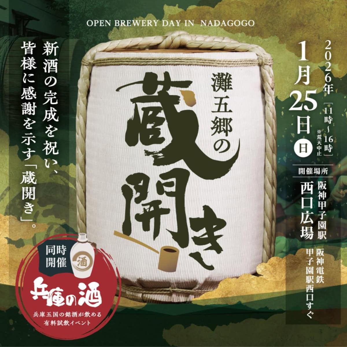 来年1月25日(日)、阪神甲子園駅西口広場で「灘五郷の蔵開き2026」が開催されるようです。