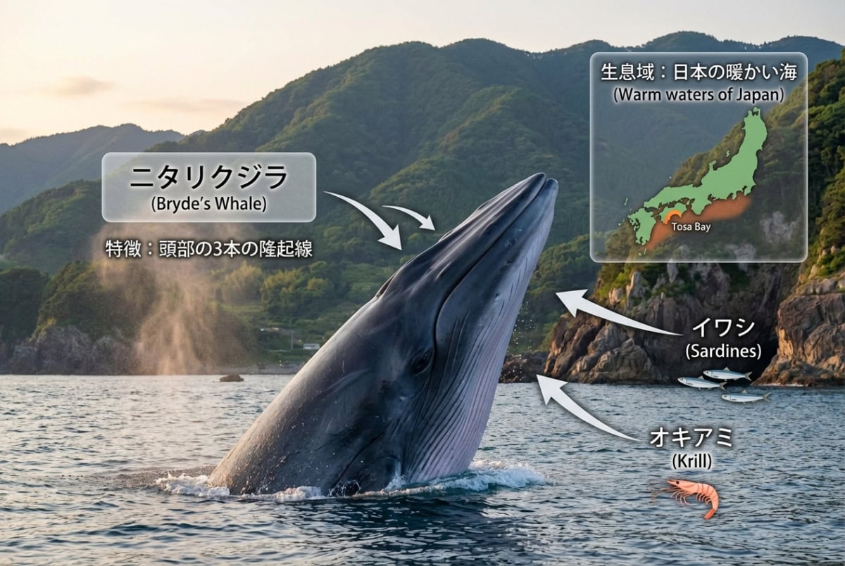 ニタリ鯨の赤身はクセが少なく柔らかで、尾の身(大トロ)はマグロの大トロのようなとろける甘みと深い旨味が特徴みたい。食べたことないので気になる
