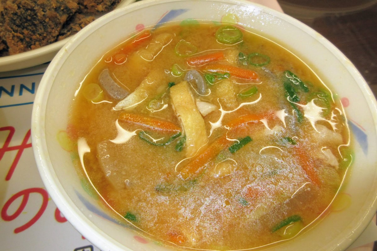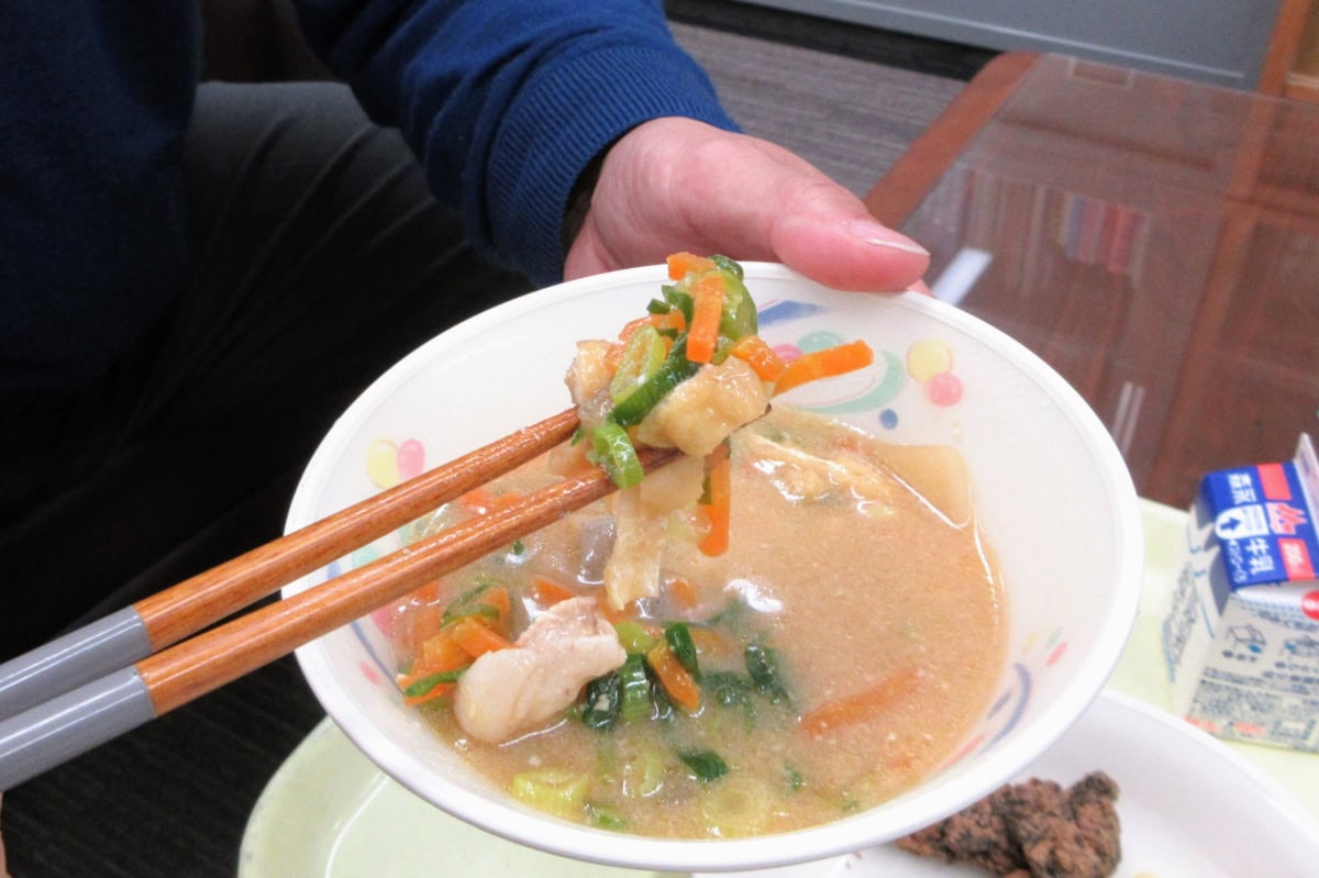 こちらは、前回も紹介した「かす汁」。酒粕は西宮の日本盛です〜