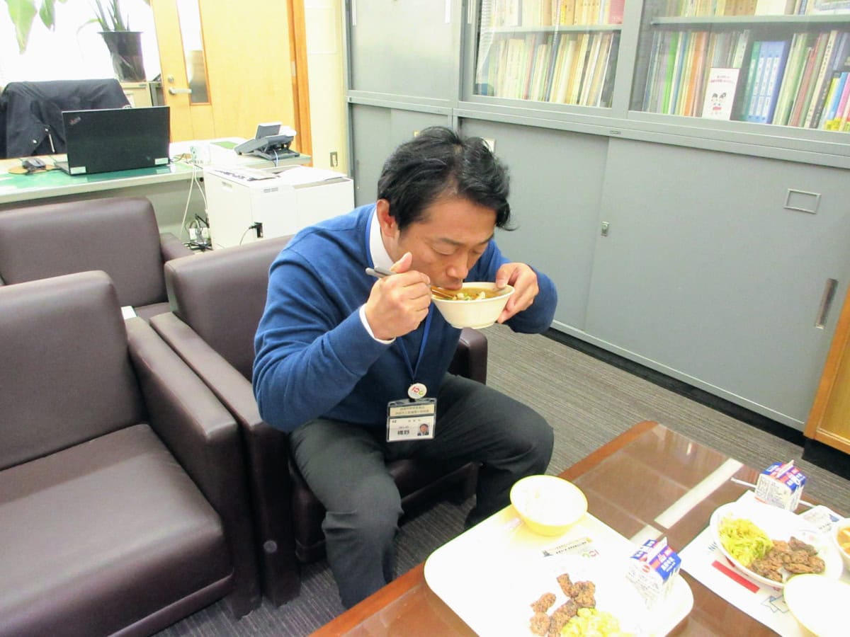 学校給食課の管理栄養士である石橋さんも一緒に食べます〜