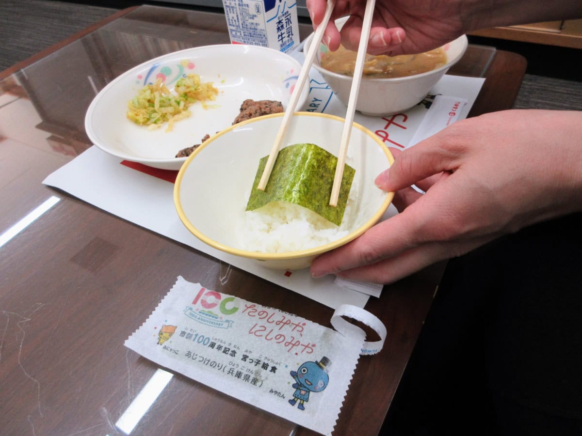 さらに、みやたんデザインの味付けのりまで出てきて「宮っ子給食」って書いてました!