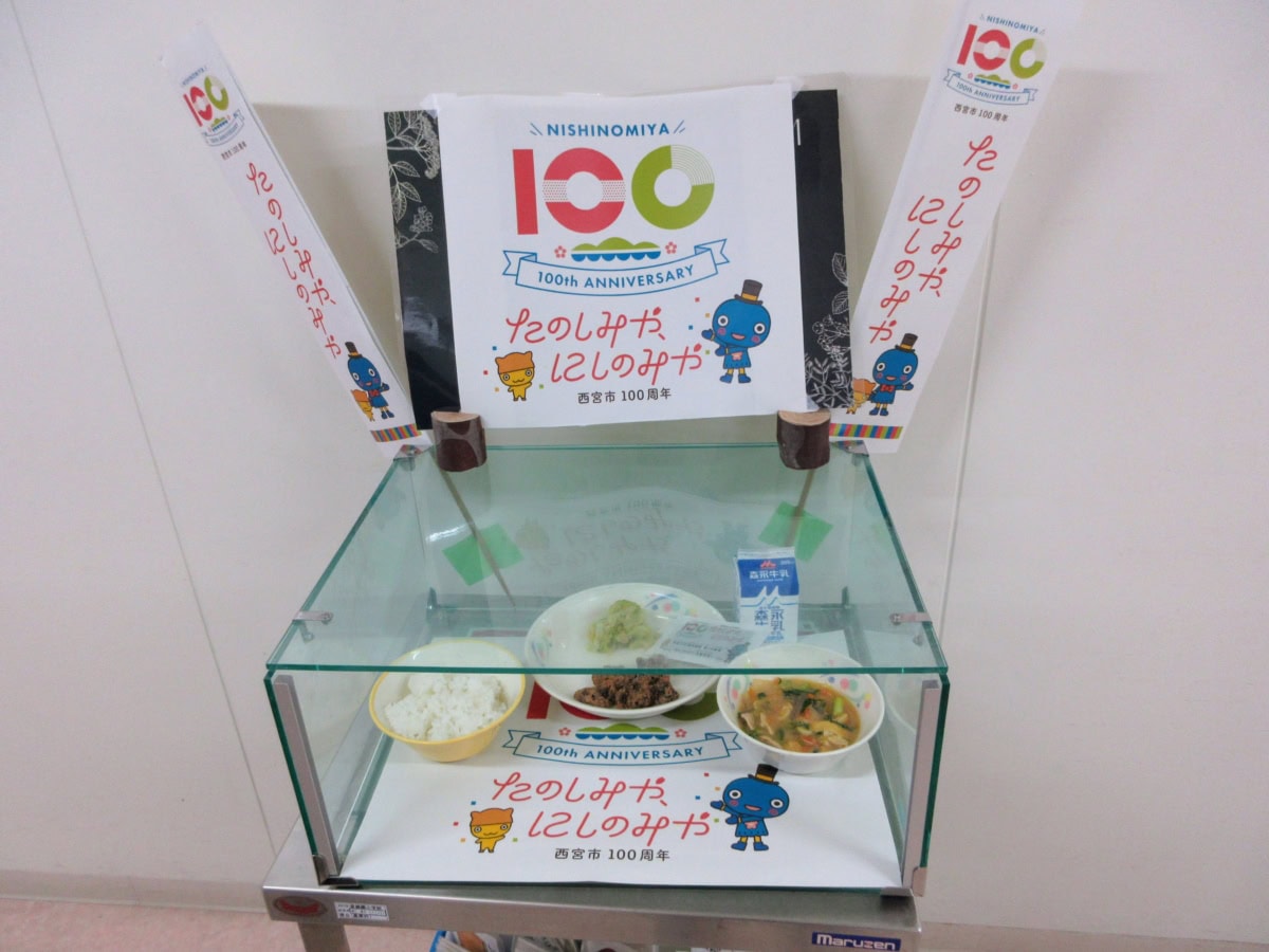 楽しい100周年の記念メニュー。いろんな演出で盛り上げて本当にいい給食になりましたね!