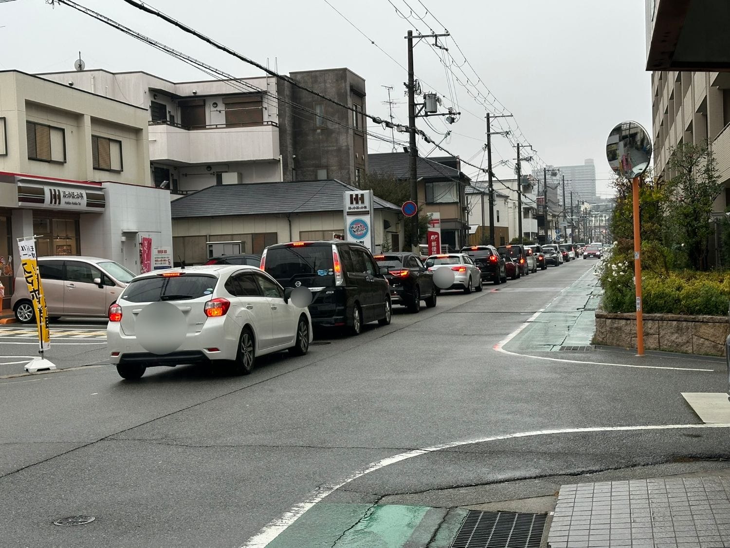 山手幹線ぞいの駐車場入口も渋滞が起きてました~。電車や自転車のほうがいいかも。