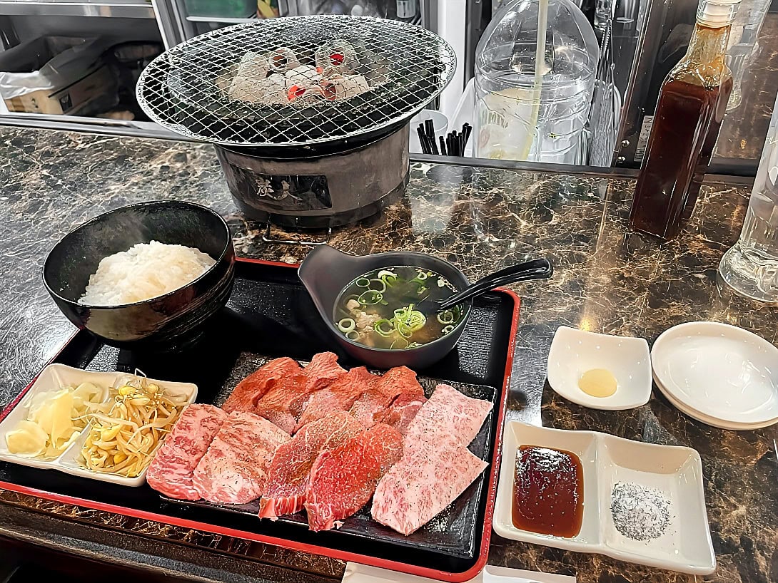 ずらっと並ぶ肉の迫力。七輪登場でテンション一気に上昇♪