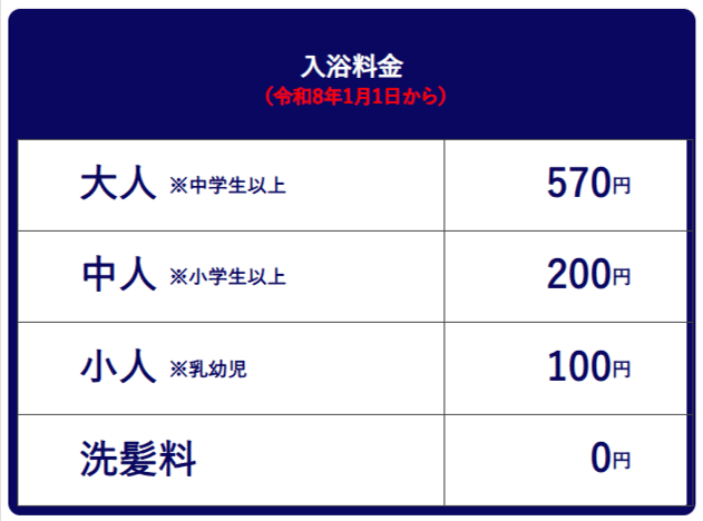 令和8年1月1日より、兵庫県の銭湯の料金が改定されたようです。