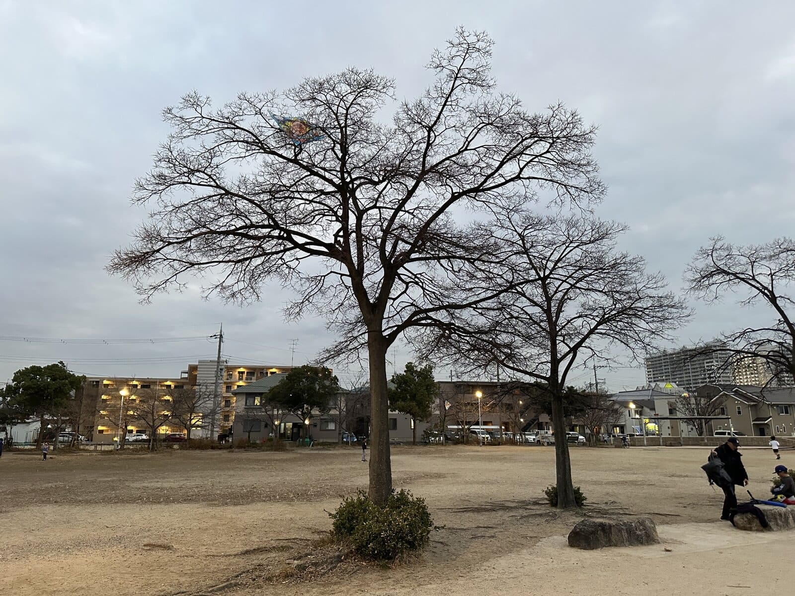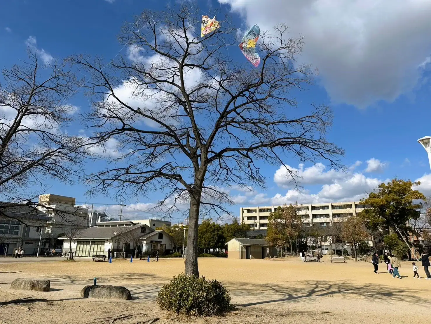 高木公園のタコ引っかかり事件、実は毎年起きています。中央の木は引っかかりやすいのでご注意を~。もし引っかかったら無理に取らずに西宮市へ連絡してくださいね。