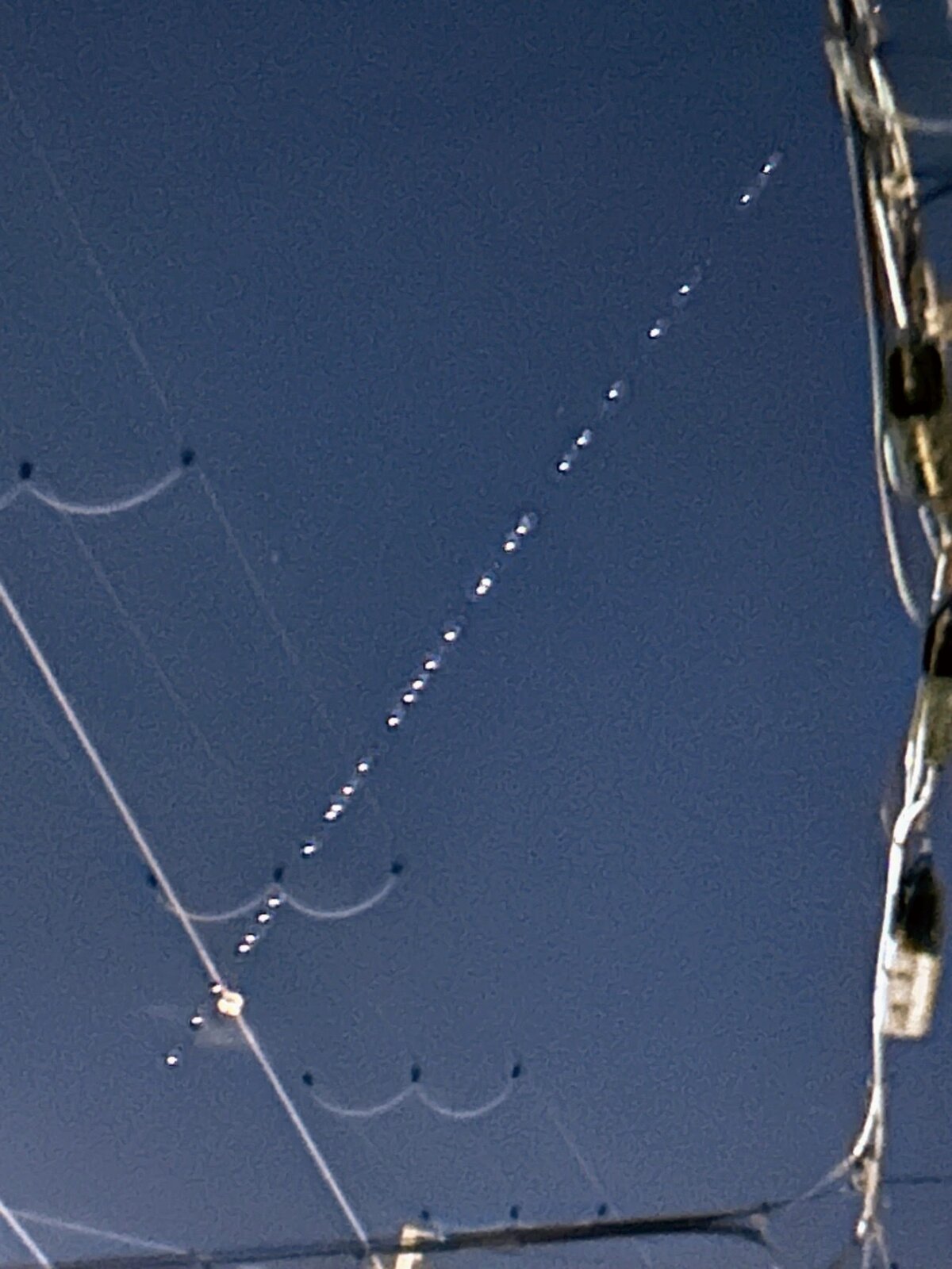 空に謎の点々のした光が1列綺麗に飛んでたんだけど!!