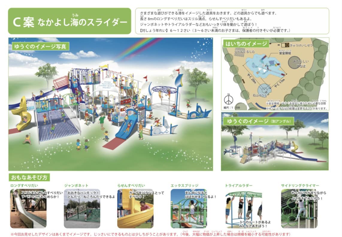 浜甲子園運動公園の遊具が新しくなる件、アンケート結果が出たようで、市のホームページに載ってました👀